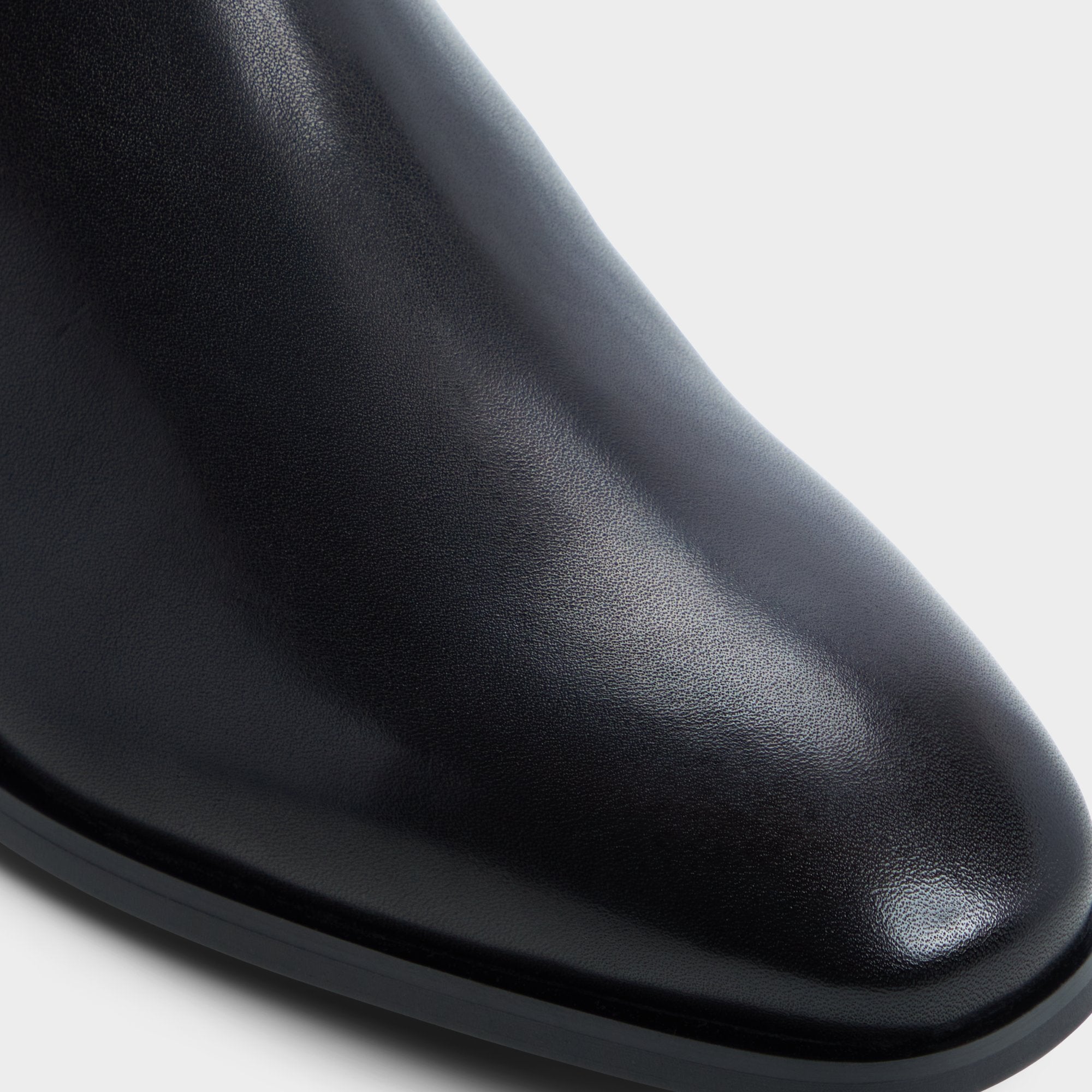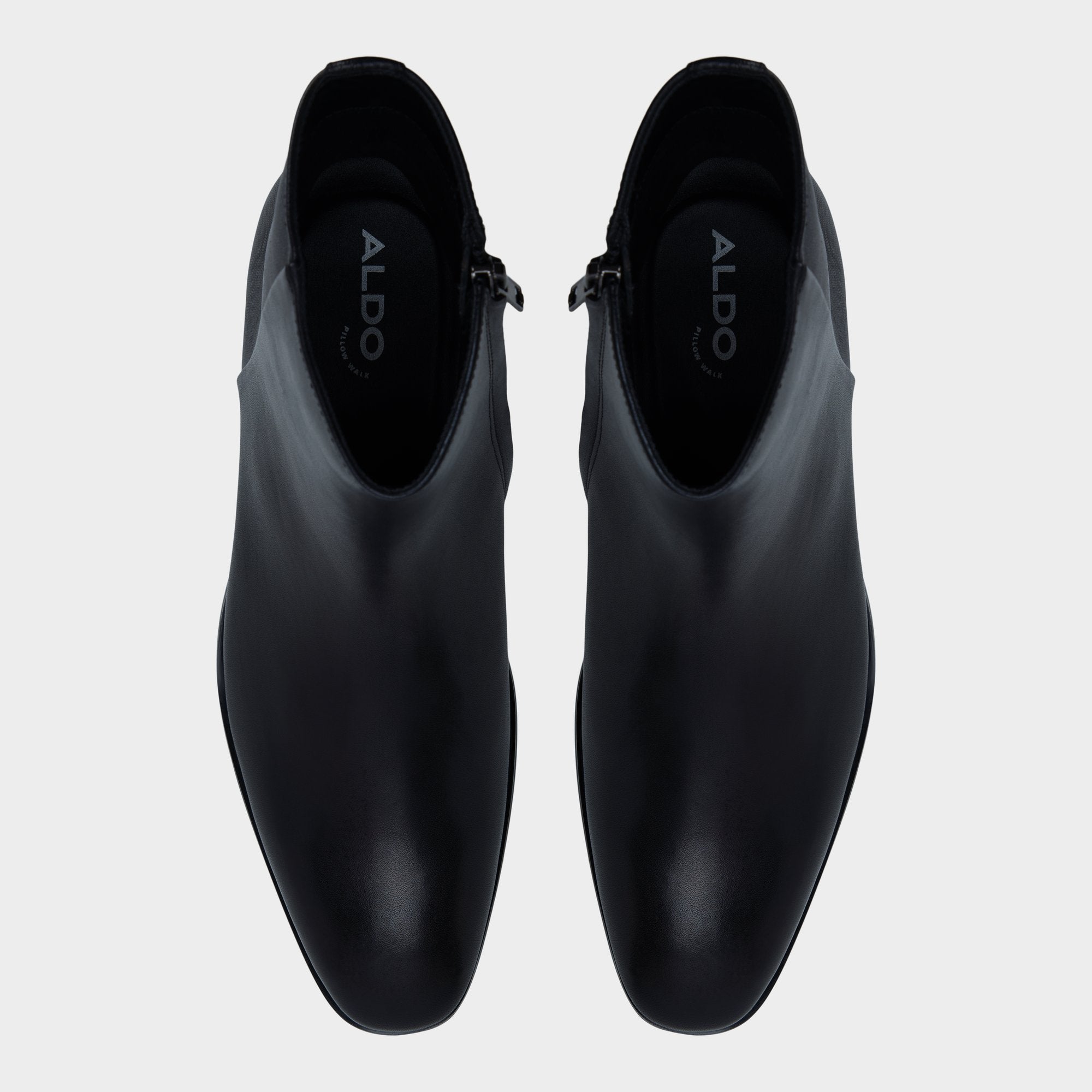 Smooth black leather in front and a textured rear panel create a subtle contrast in this ankle boot. while a side zip offers quick access and a low stacked heel ensures easy movement. Anchor slim dark denim for evening meet-ups or polish tailored trousers on office days-its squared toe finishes each look sharply.