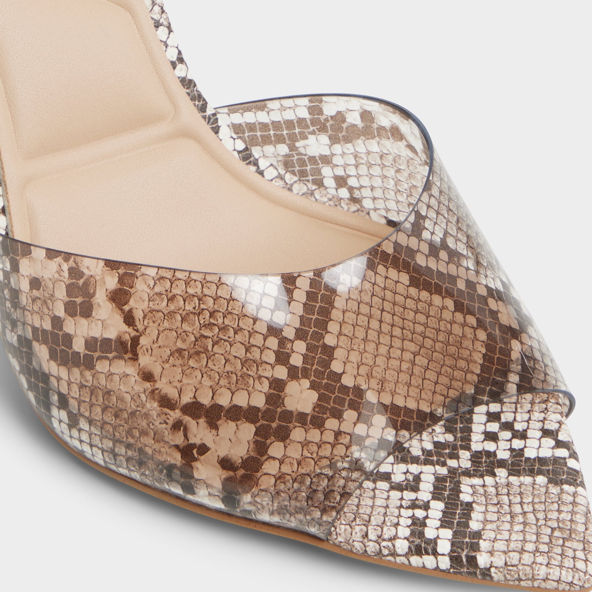Sleek faux-snakeskin drapes a minimal mule. with a slender stiletto elevating every step and subtle padding making gliding easy from morning meetings to late-night city strolls through crowded sidewalks and sunlit avenues. Pair with cropped tailored trousers for brunch-to-boardroom polish. or slip beneath minis when rooftop cocktails drift into after-dark conversations.