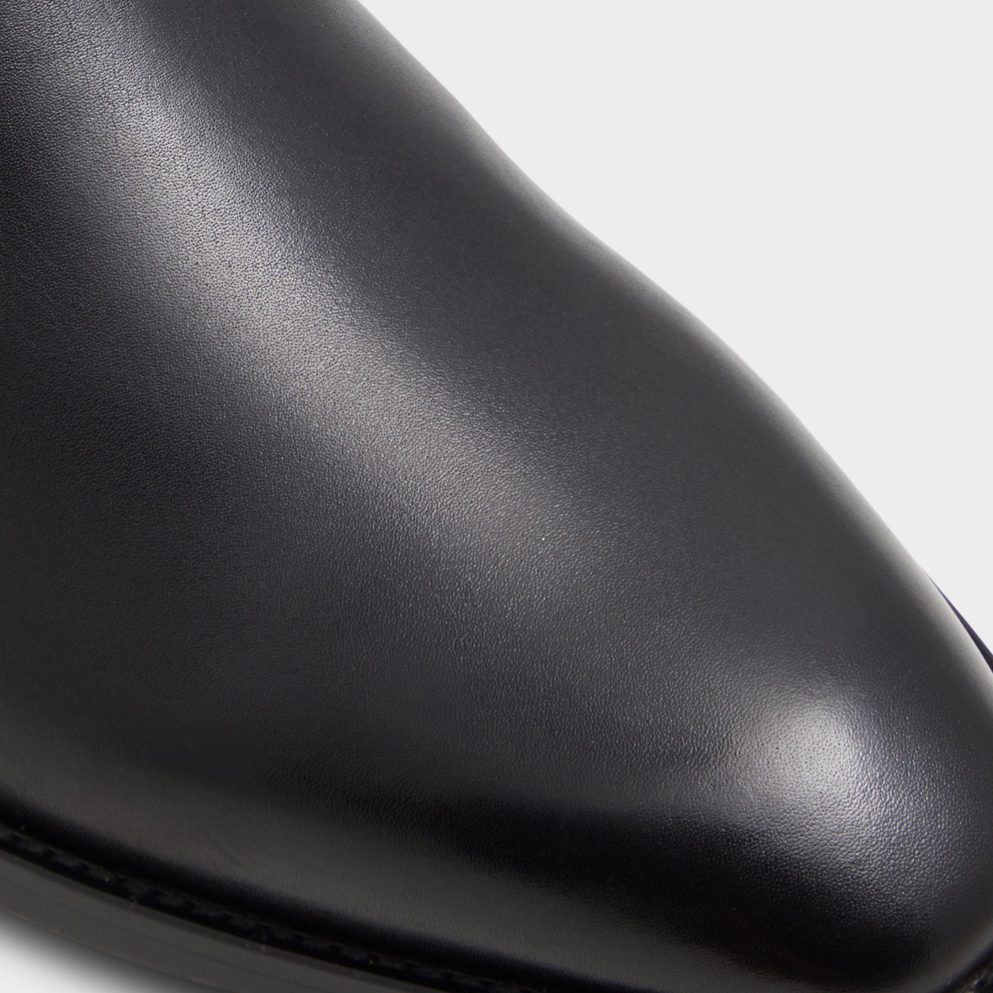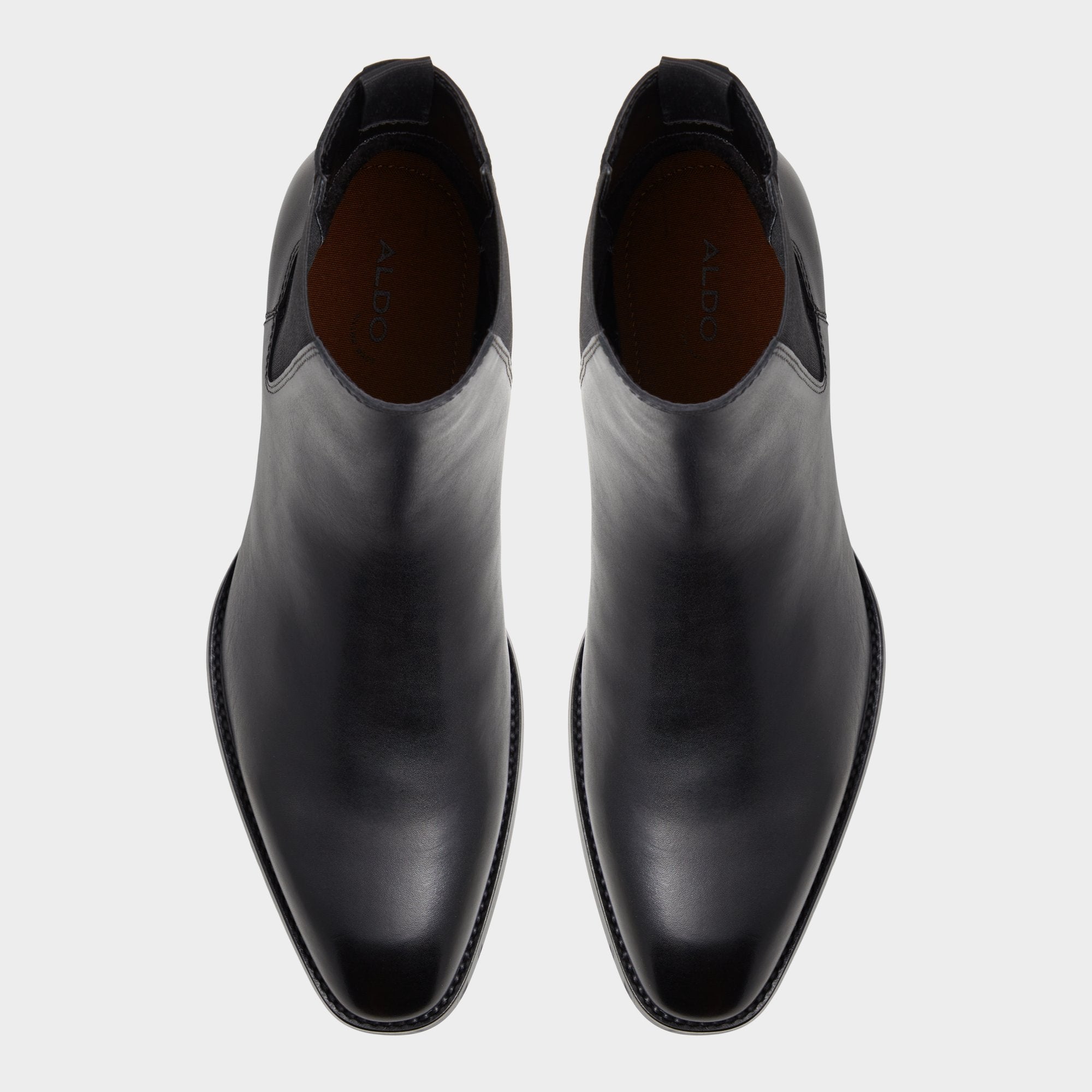 Mirror-sleek black leather seamlessly complements deep tonal elastics on this minimalist Chelsea boot. ensuring a streamlined look while a flexible rubber sole and low block heel allow for comfortable walking all day. Pair with slim wool trousers for pitch meetings. or roll with black denim for gallery nights-its minimal design fits effortlessly.