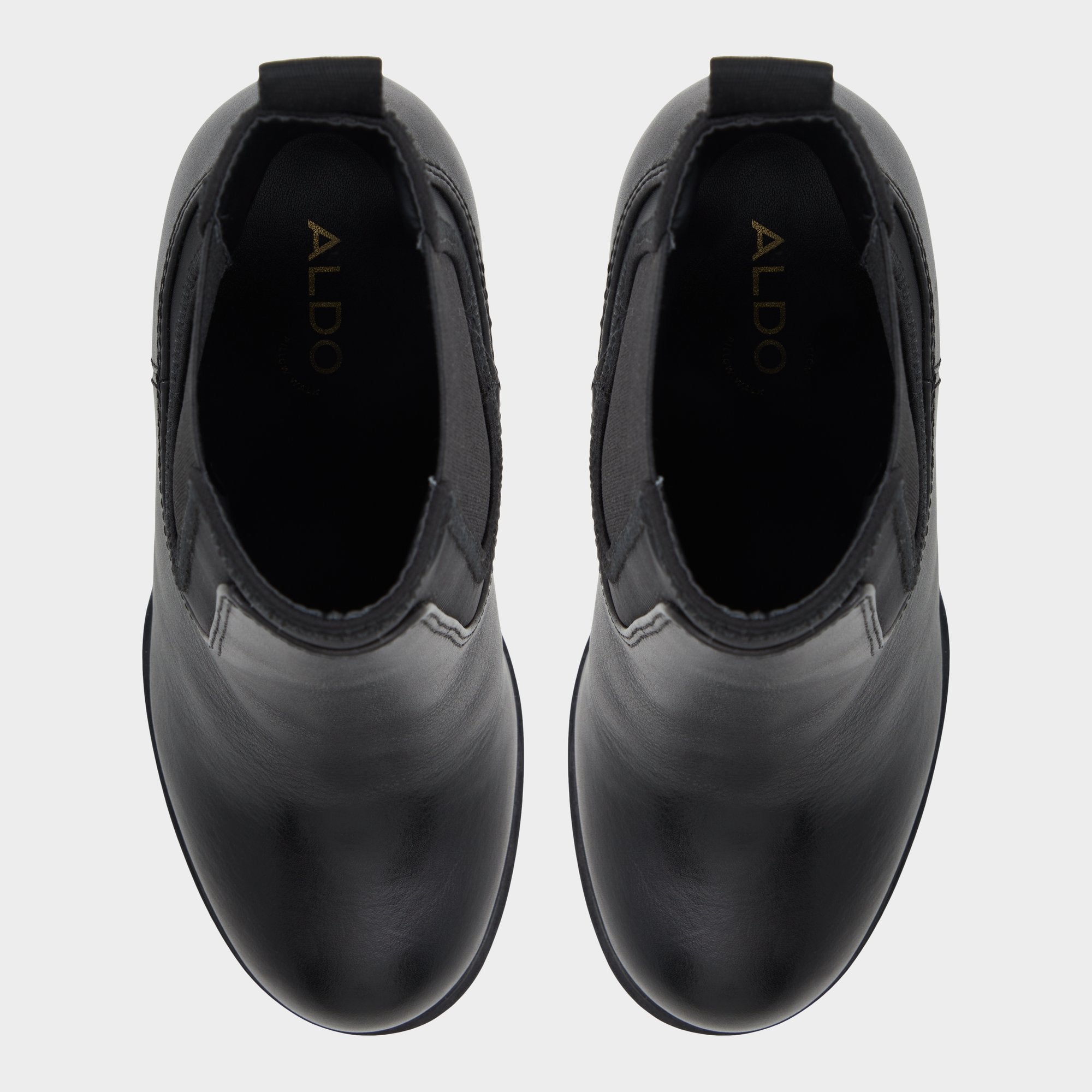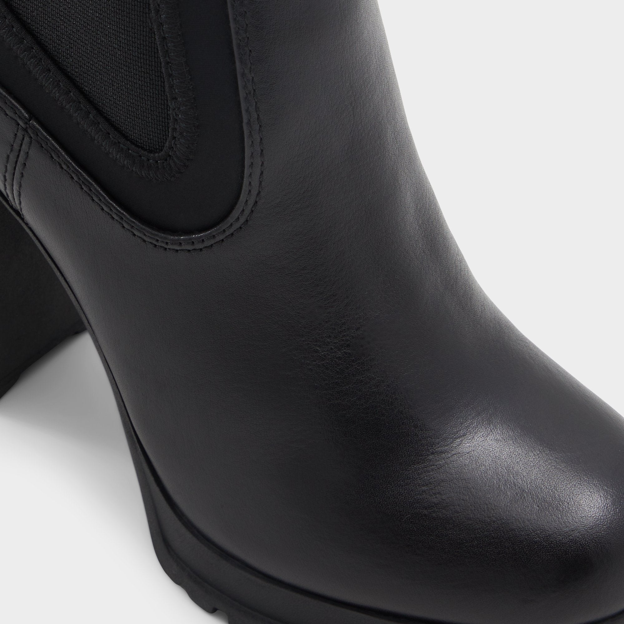 A sky-reaching block heel meets a grippy lug sole in this sleek leather Chelsea boot. giving city-stomping nerve while stretch side panels keep the pull-on fit smooth and drama-free. Pair with cropped flares for office brainstorms. or anchor a slip dress when after-dark concerts call for extra edge.