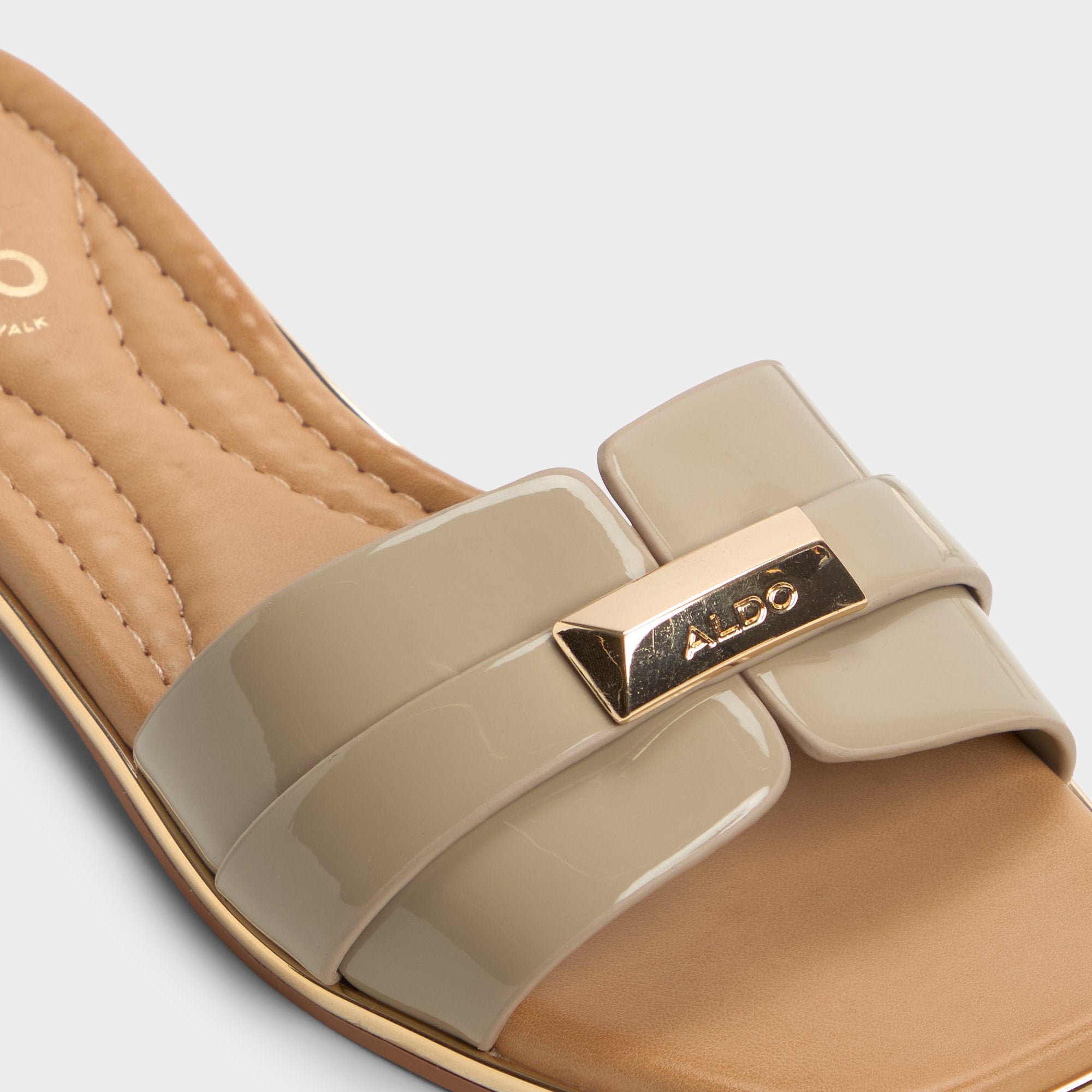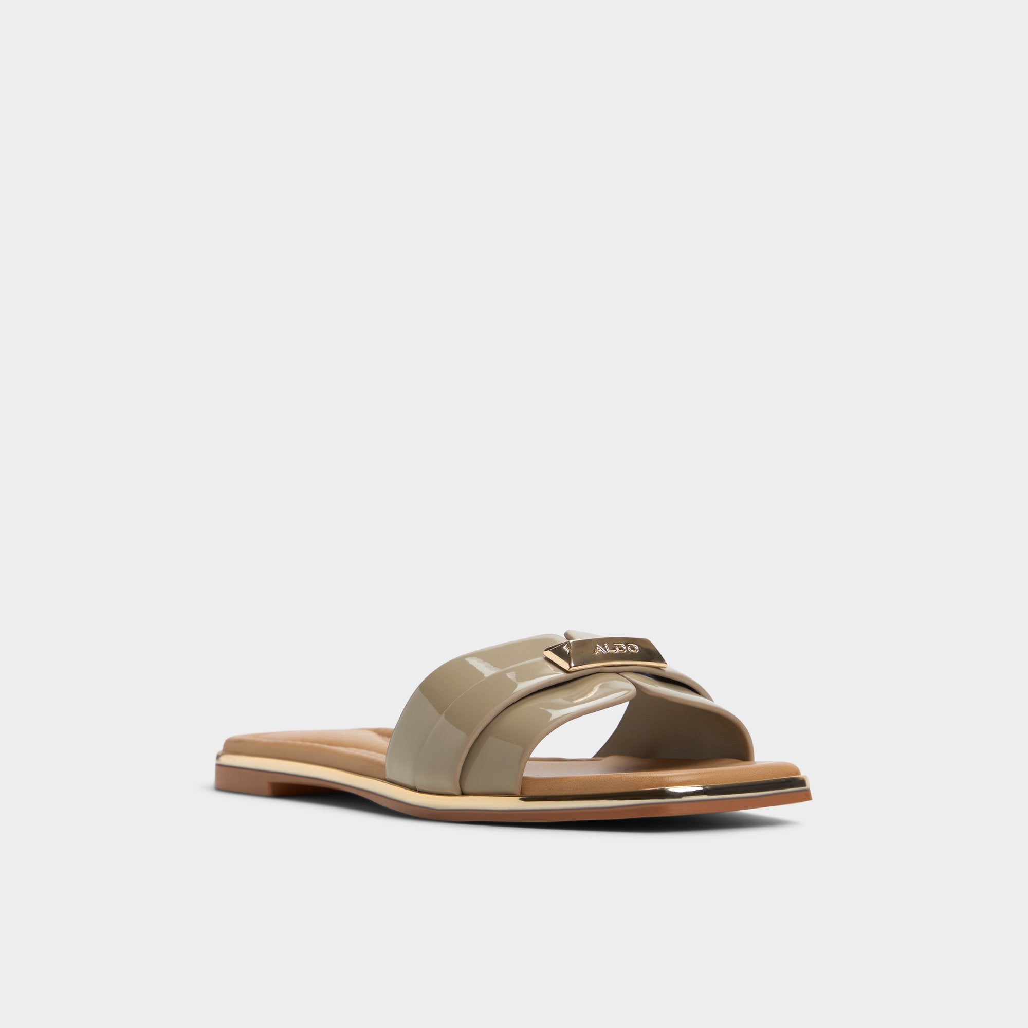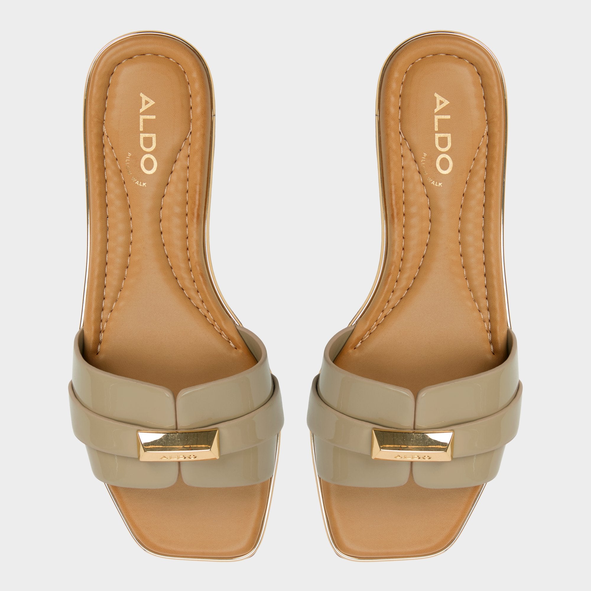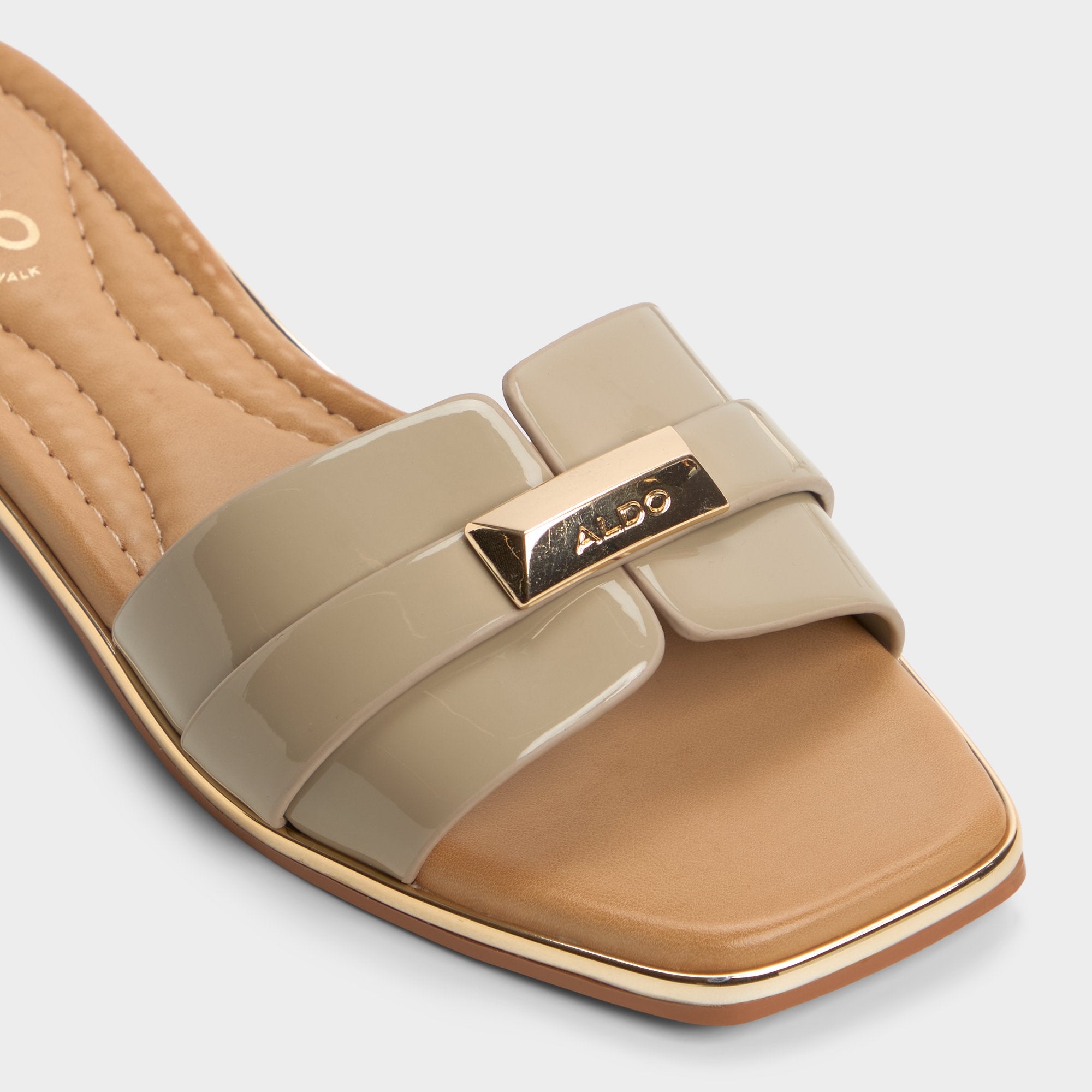 Distinguished by chic metal detailing and a modern square toe. these flat sandals were made for beaches. brunches and BBQs.