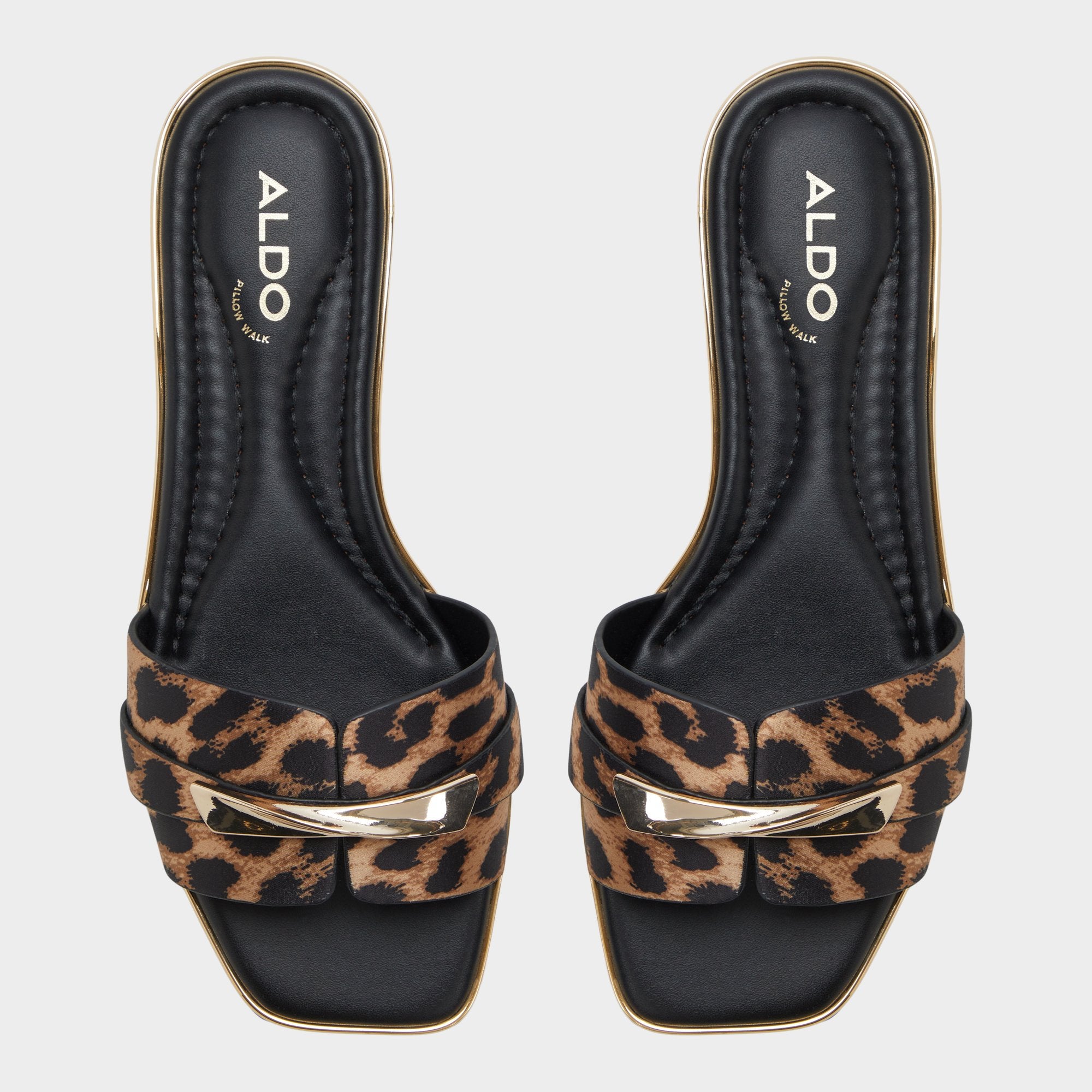 A leopard-print faux-fur strap softens into plush comfort. then sharpens its attitude with a glossy pyramid spike over a sleek square-toe slide that keeps every sun-chasing step light. Pair with cut-offs for festival strolls. or slip under a satin midi when patio cocktails evolve into rooftop playlists.
