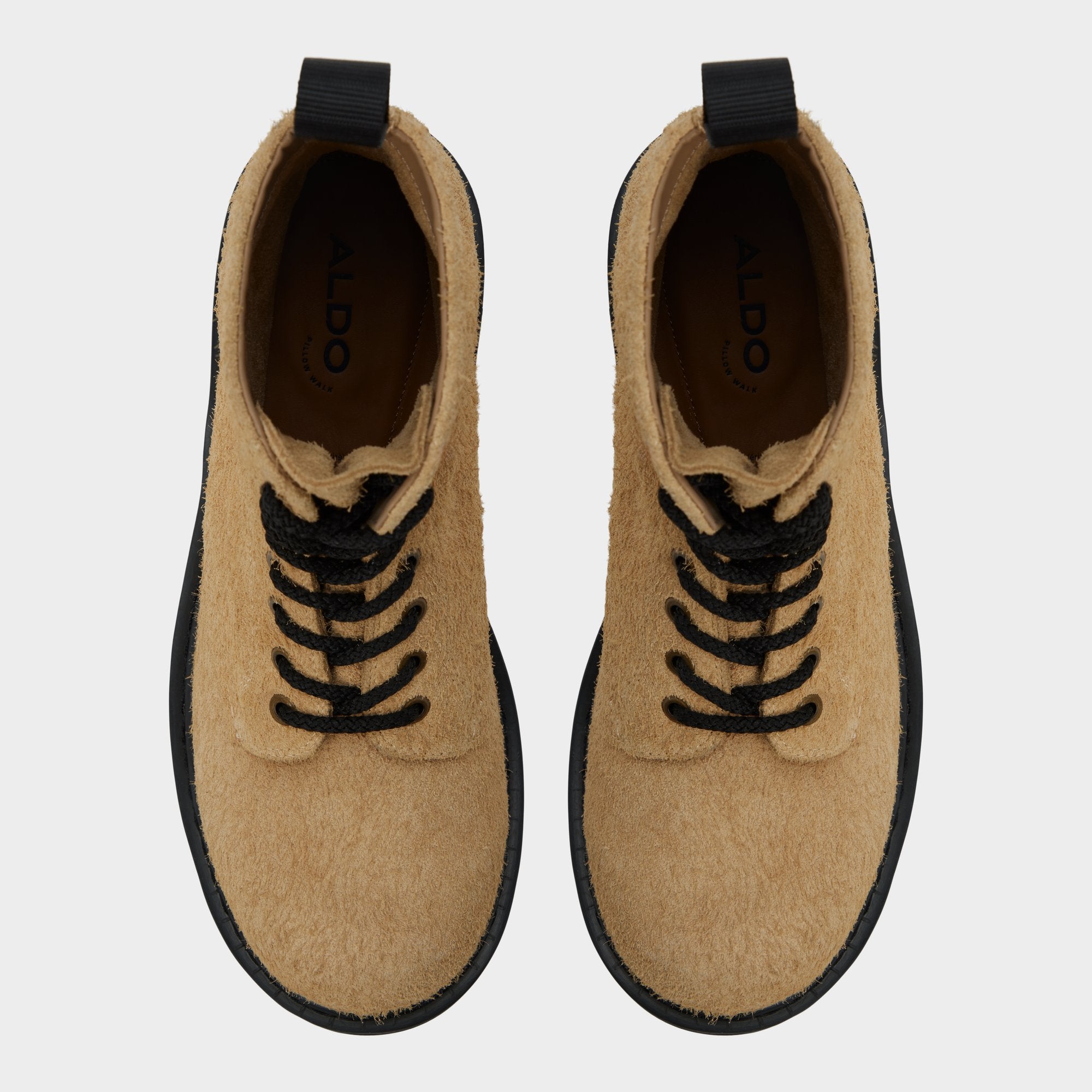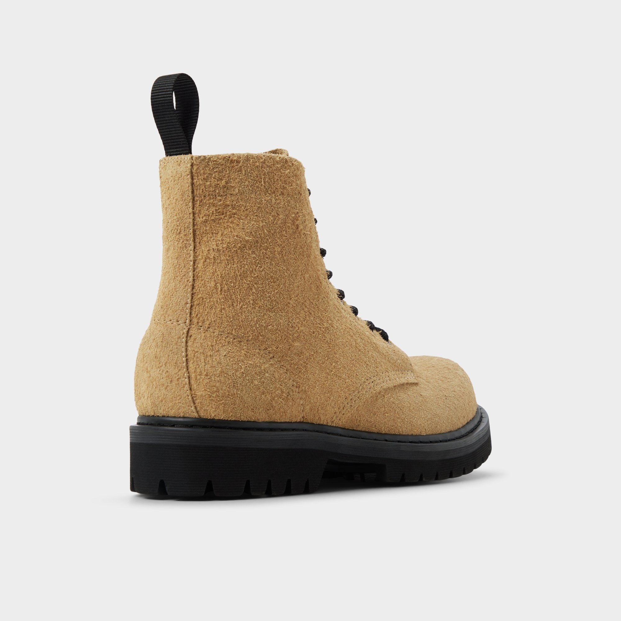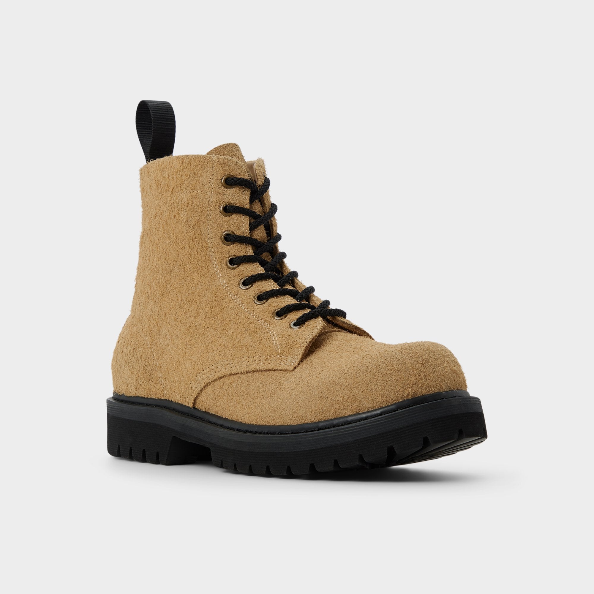 Rugged edge. Everyday ease. Step into cool-weather season with this versatile lace-up boot. designed in textured beige with a contrast lug sole for all-day comfort and grip. The classic silhouette gets a modern refresh with durable construction. bold black laces. and a pull tab for easy on-and-off wear. Effortlessly pairs with denim. tailoring. or laid-back layers. making it a go-to boot for every season.