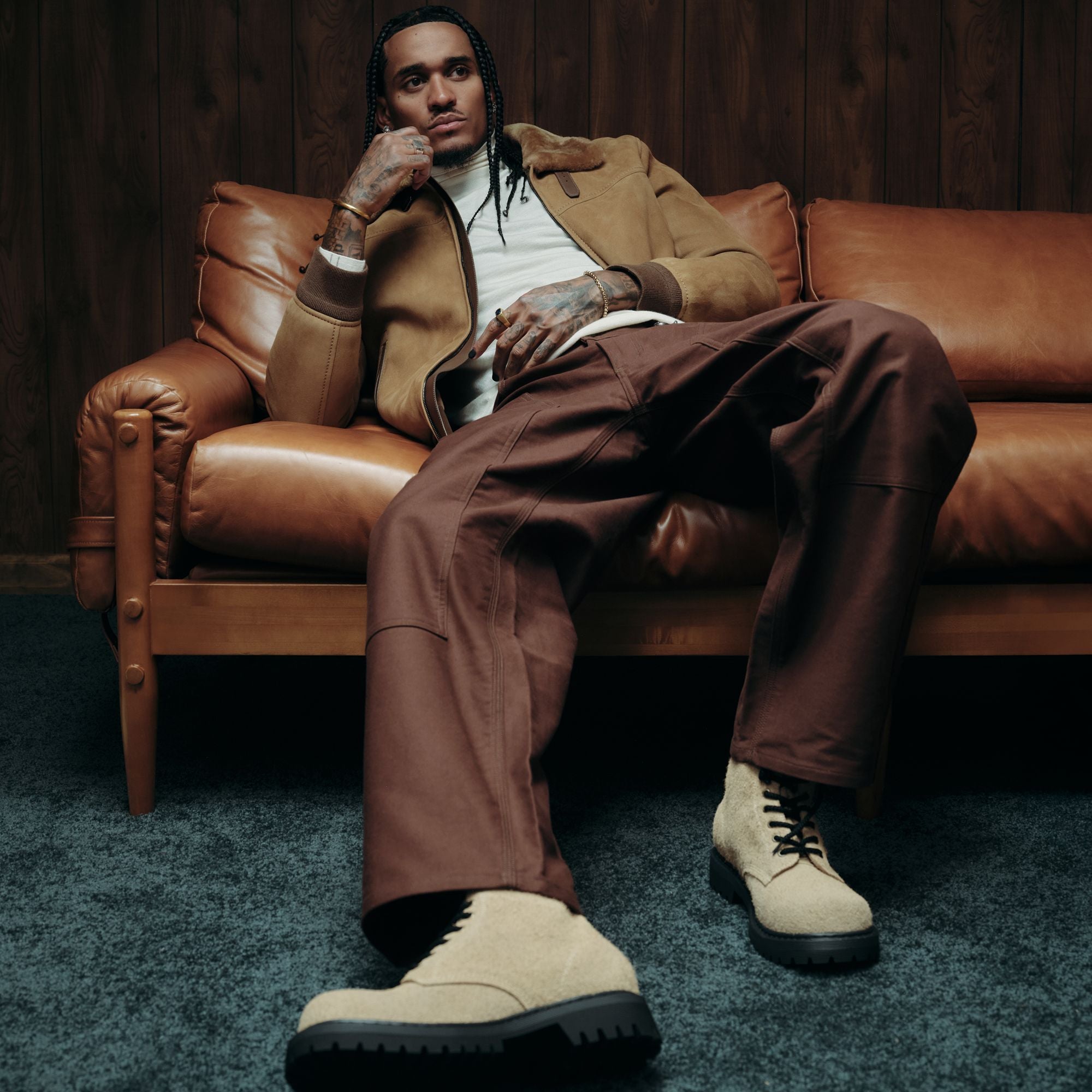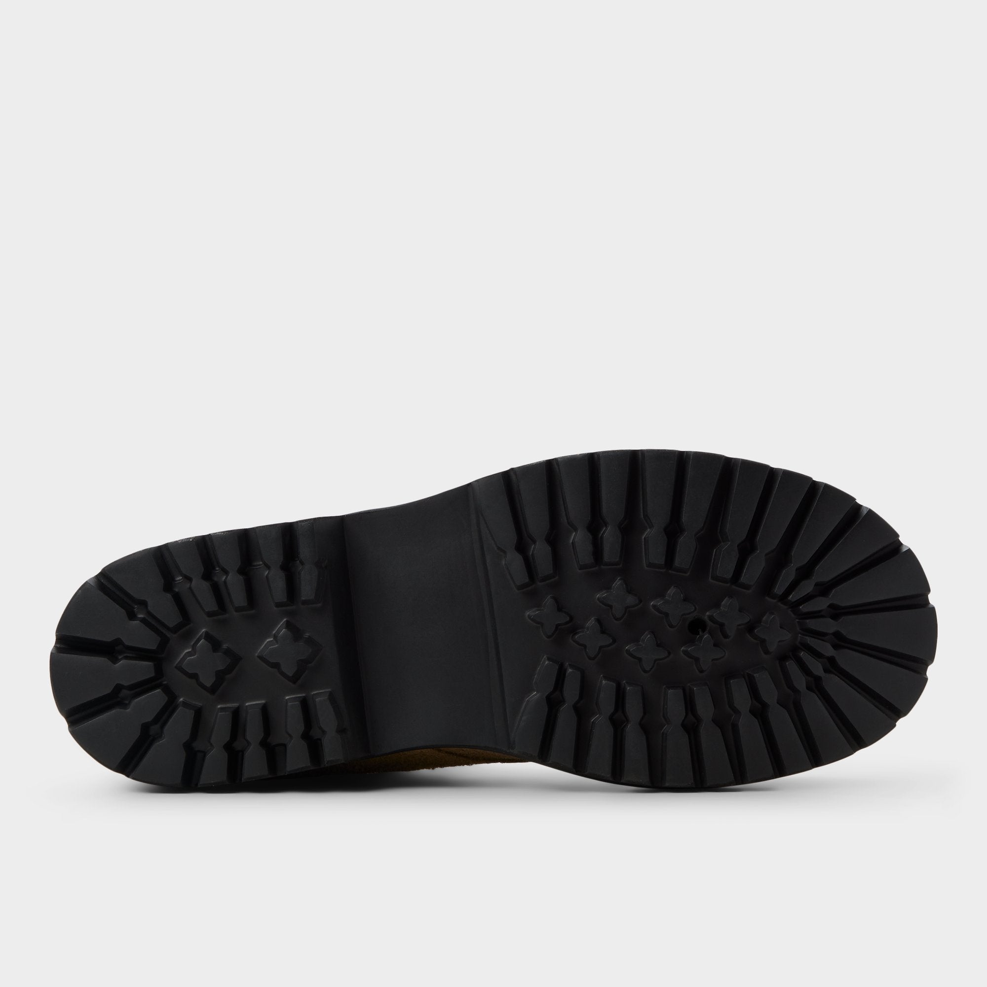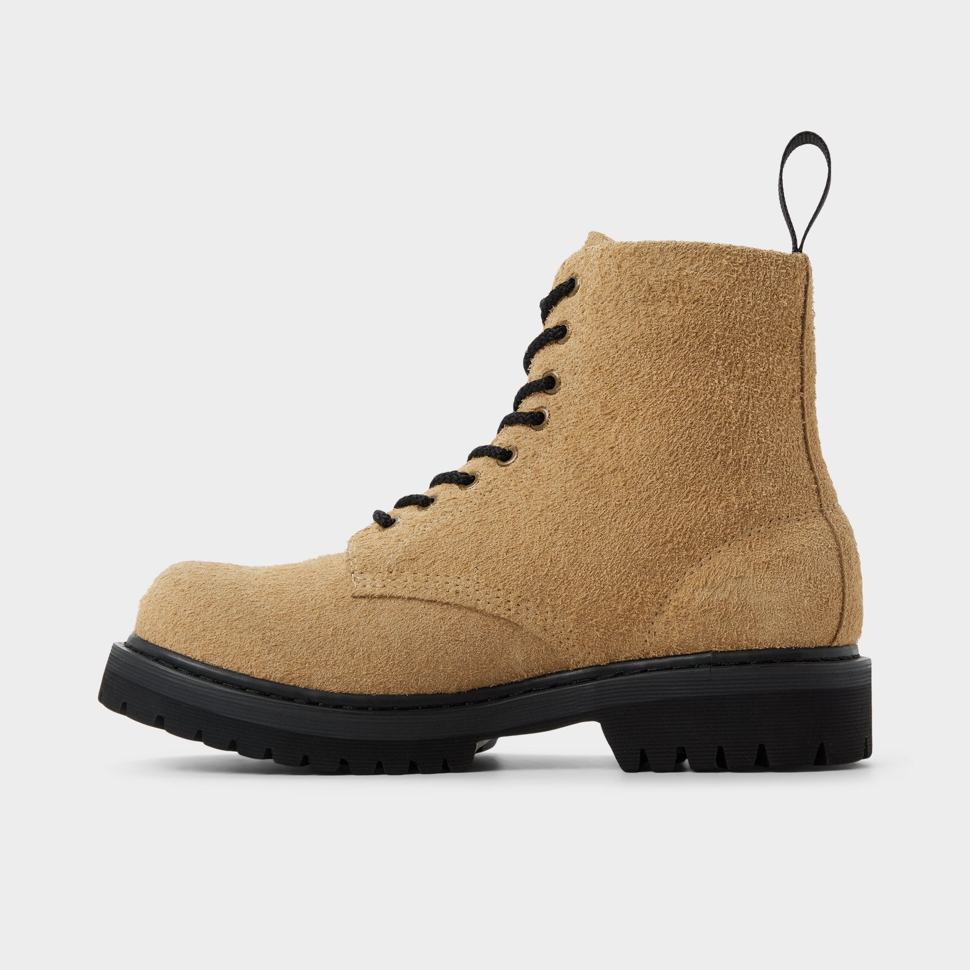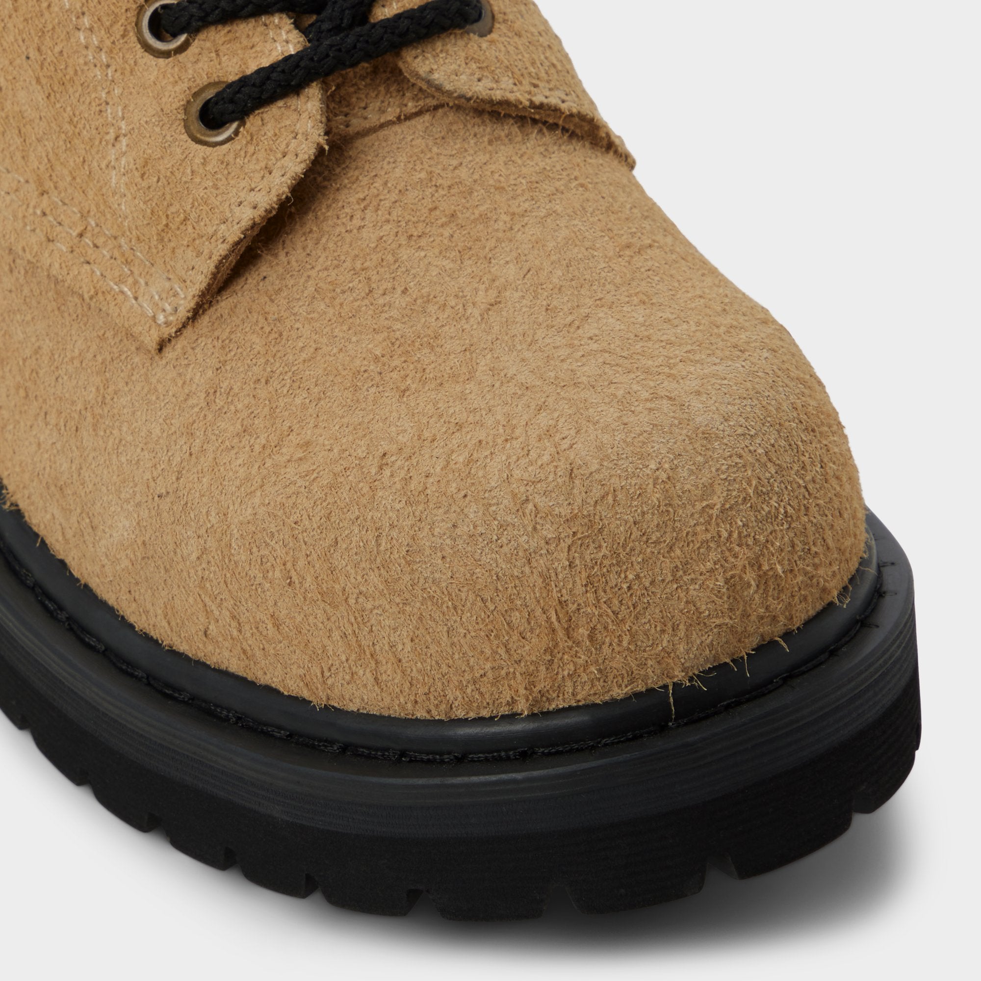 Rugged edge. Everyday ease. Step into cool-weather season with this versatile lace-up boot. designed in textured beige with a contrast lug sole for all-day comfort and grip. The classic silhouette gets a modern refresh with durable construction. bold black laces. and a pull tab for easy on-and-off wear. Effortlessly pairs with denim. tailoring. or laid-back layers. making it a go-to boot for every season.