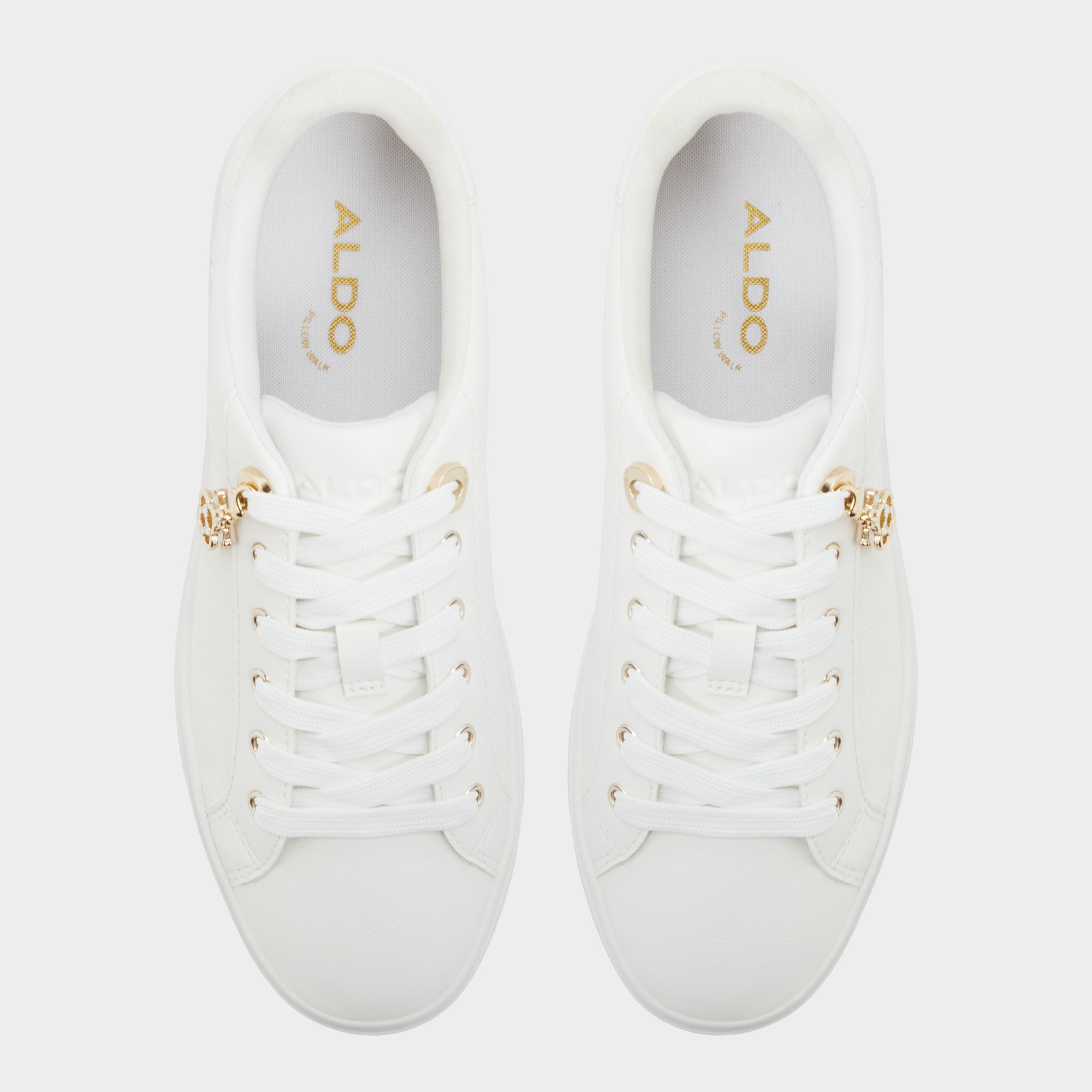 Smooth leather and textured canvas fuse on a cup-sole sneaker. finished with a gold-tone charm that catches light and makes everyday errands feel a little more playful. Pair with denim crops for city chills. or slip beneath a floaty midi when coffee runs turn to after-work strolls.