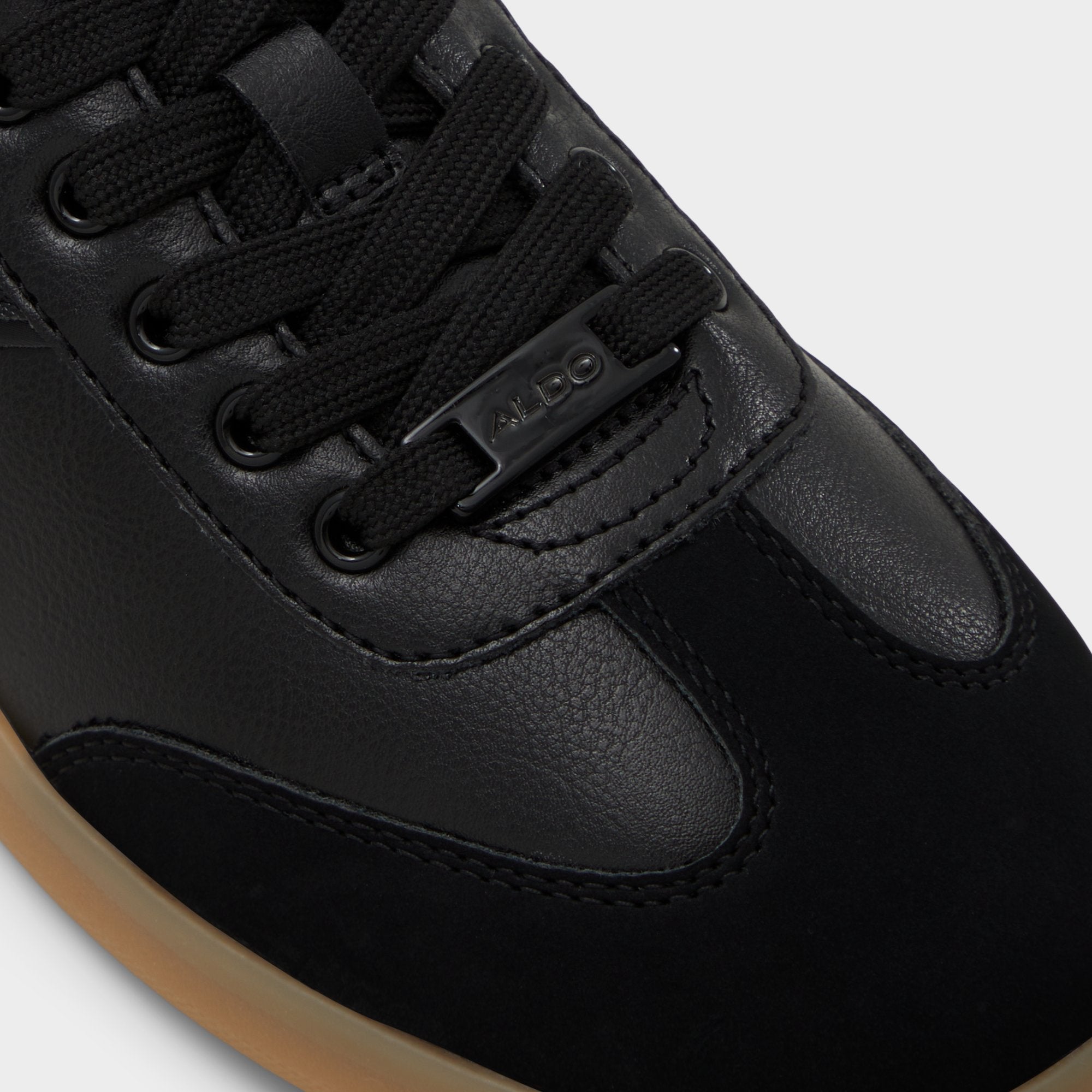 Sleek black panels in smooth and textured synthetics ride above a retro gum cupsole for understated throwback energy while soft textile lining keeps every city dash relaxed. Pair with cropped trousers for co-working catch-ups. or lace them with a satin slip skirt when concert nights call.
