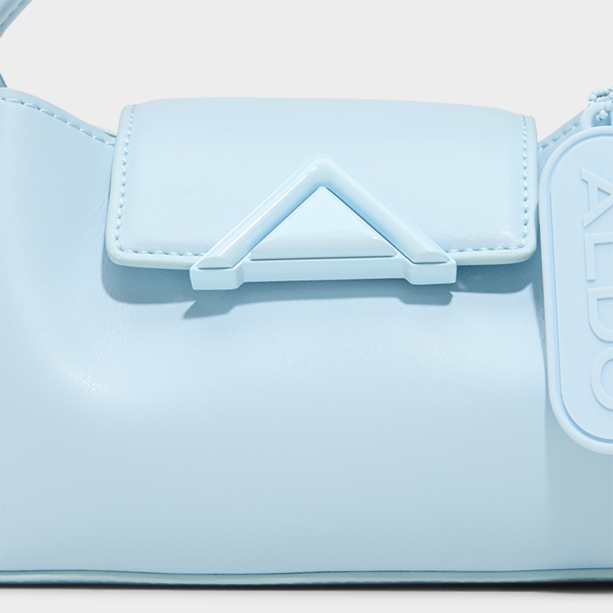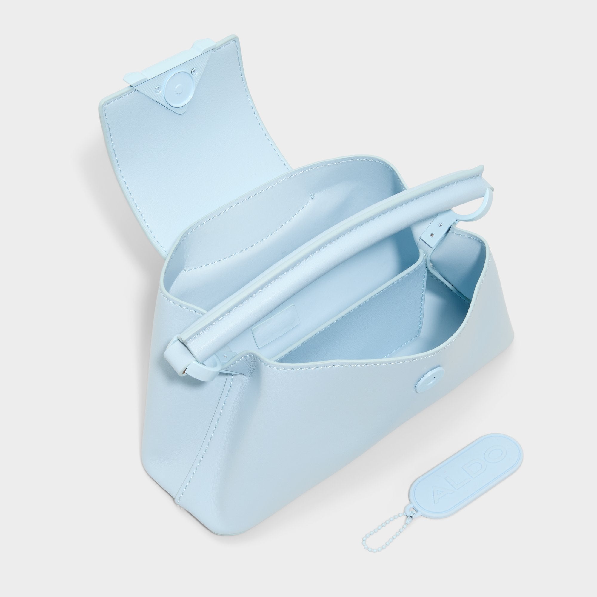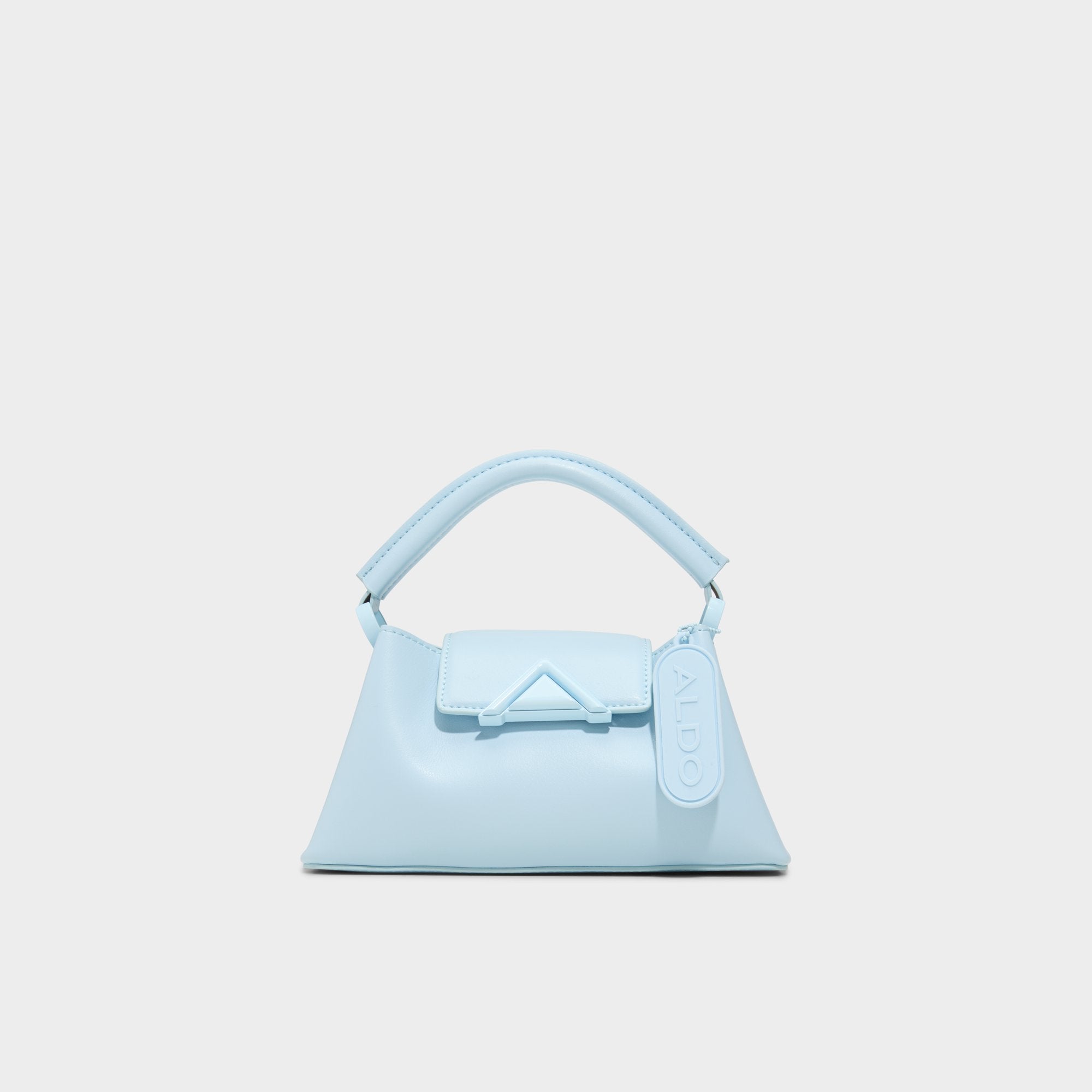 Sculpted in ice-blue matte finish. this trapeze mini bag channels modern-art vibes with a wide curved handle and a tonal triangle buckle. delivering city-ready polish without shouting for attention. Carry it with a slip dress for gallery days. or tuck it under an oversized blazer for drinks after dark.