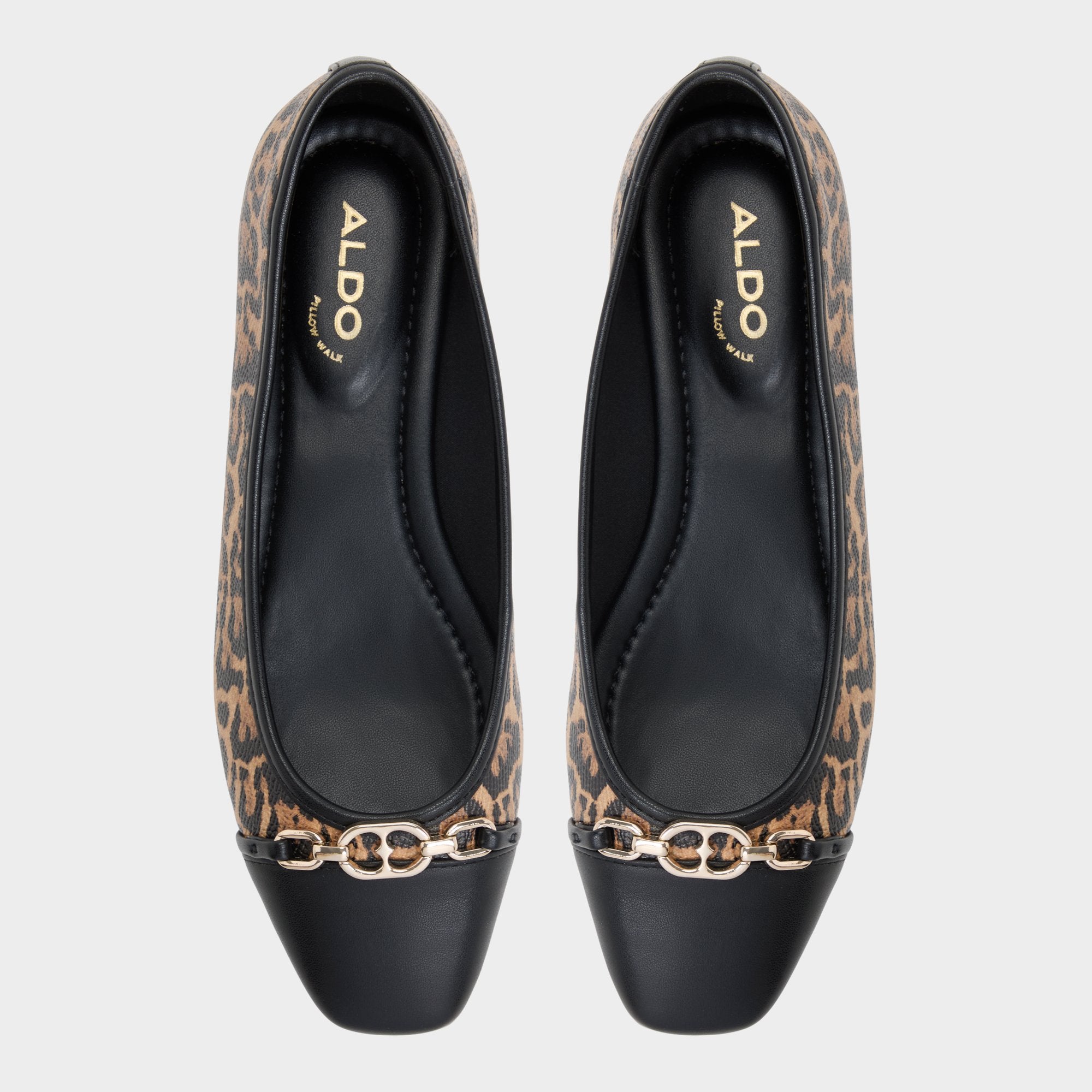 Chic leopard-textured uppers meet a smooth black cap toe trimmed with gold. adding downtown flair to this ballet flat while cloud-soft padding keeps you steady through spontaneous detours. Pair with cropped trousers for coffee catch-ups. or swap in a satin slip dress when gallery openings glide into cocktail hours.