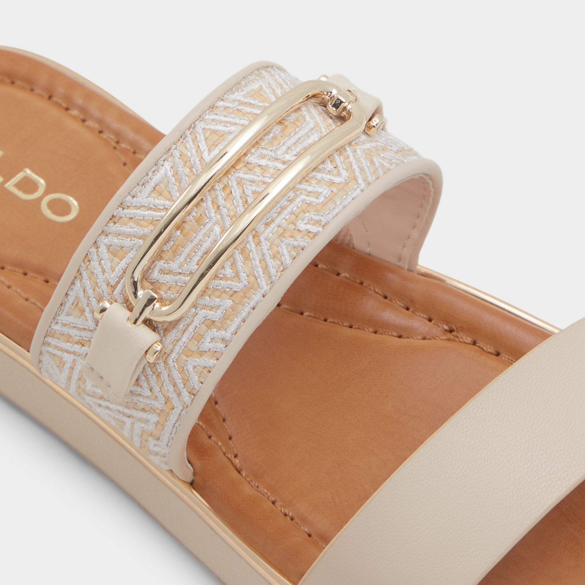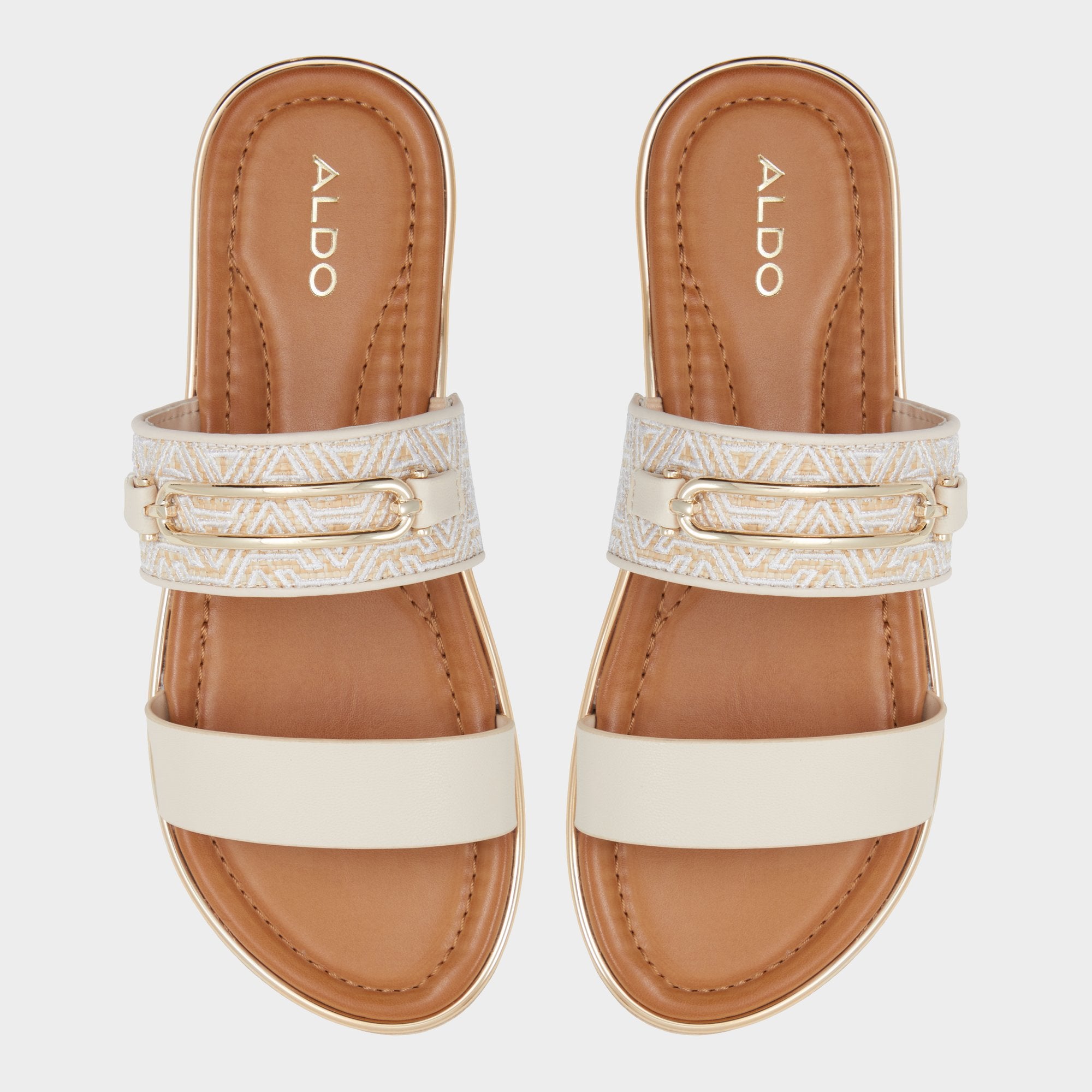 Sun-washed geometric embroidery wraps the cushy midfoot strap of this square-toed slide featuring slim front band and grippy rubber sole ready for spontaneous detours. Swap in cutoff denim for farmers-market strolls. or anchor a breezy linen jumpsuit when day trips lead to sunset seaside tacos.