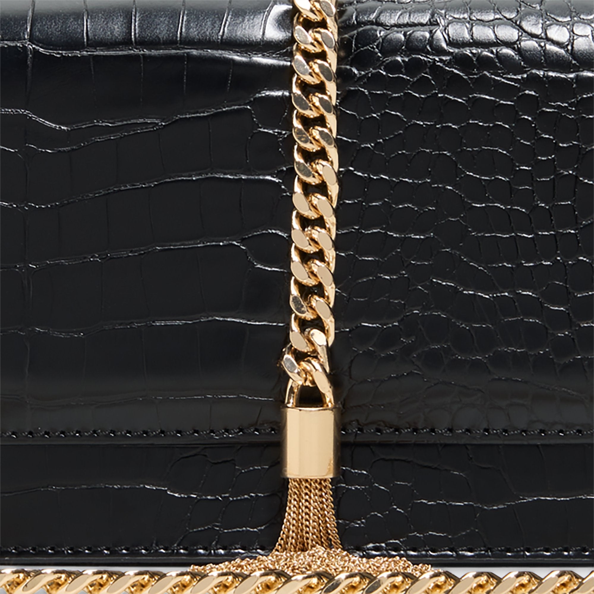 High-gloss croc embossing pairs with a gold chain. making this compact crossbody perfect for evenings out. while the turn-lock flap keeps essentials secure. Sling it over a slip dress for rooftop dates or pair it with denim on coffee runs for a touch of shine.