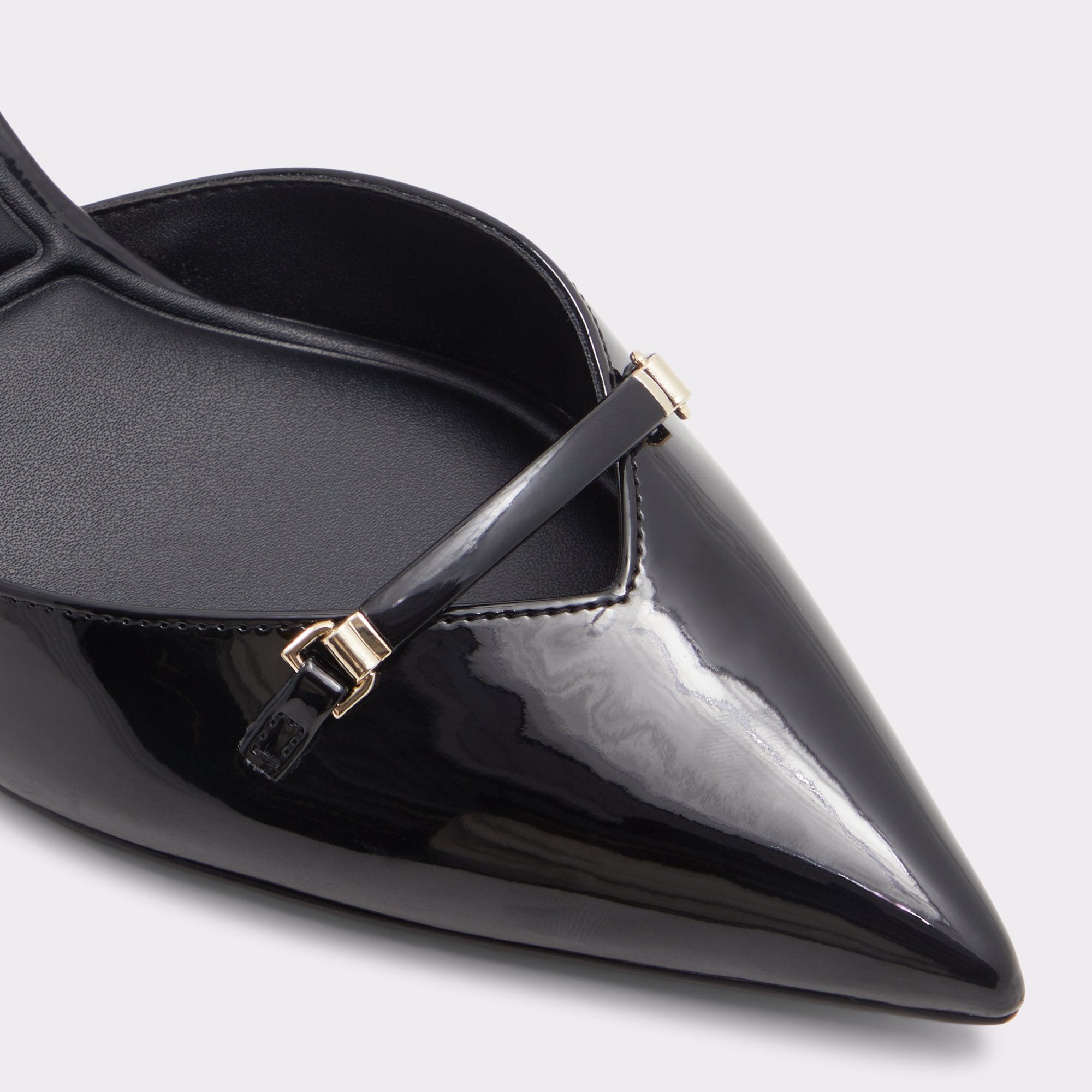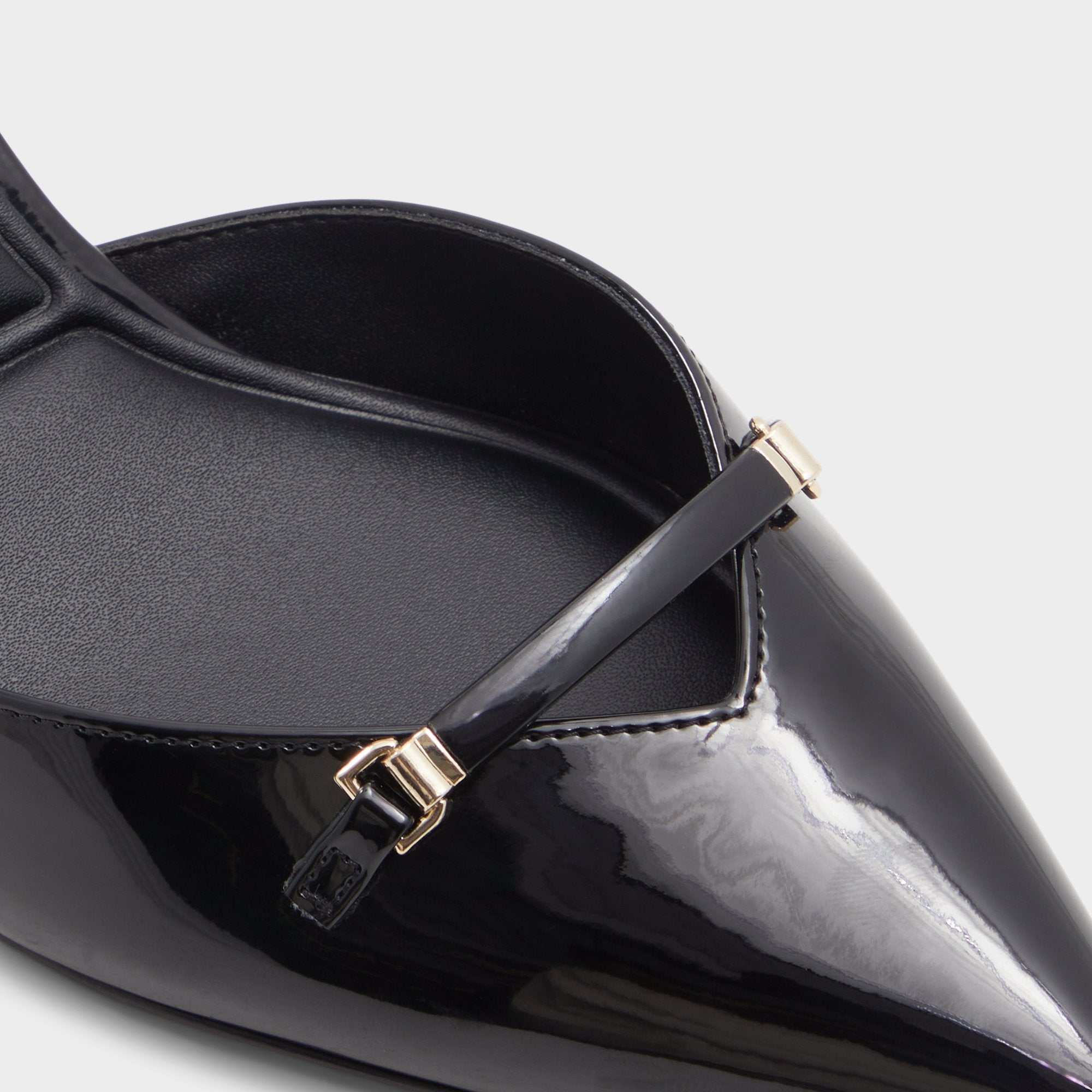 Midnight-gloss patent leather forms a sharp point on a poised kitten heel. with a metal charm bridging the vamp for film-noir confidence and a smooth leather lining that cushions every stride. Pair with tailored joggers for after-hours city nights. or slip on with a sleek jumpsuit when rooftop gatherings glow under starlight.