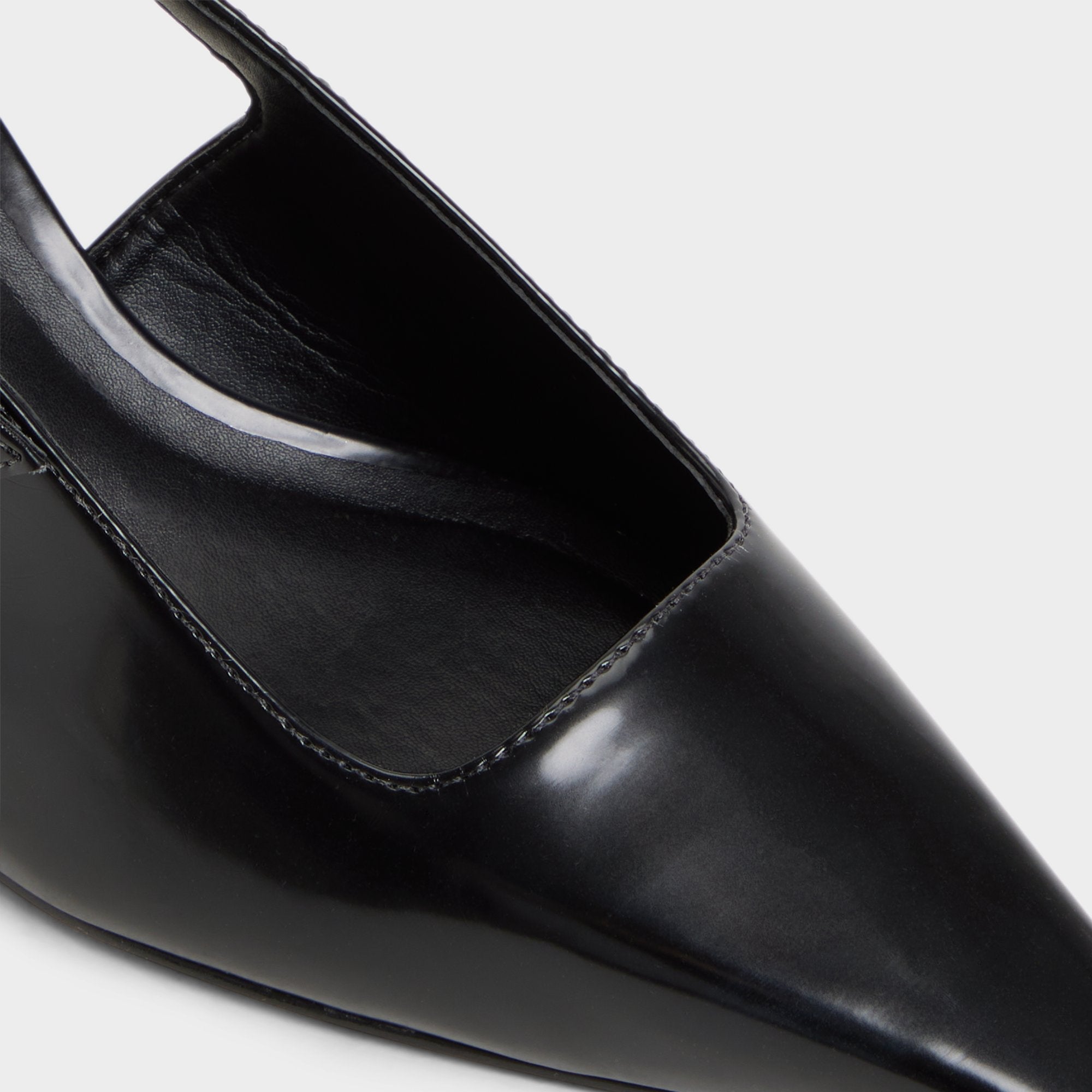 Midnight gloss leather sharpens the slingback silhouette. a gleaming gold buckle punctuating the strap as a low-set kitten heel keeps confidence effortless from desk to downtown through meetings. drinks. and quick city hops. Pair with tailored trousers for pitch meetings. or trade satin skirts for jazz-bar evenings when city lights glow.