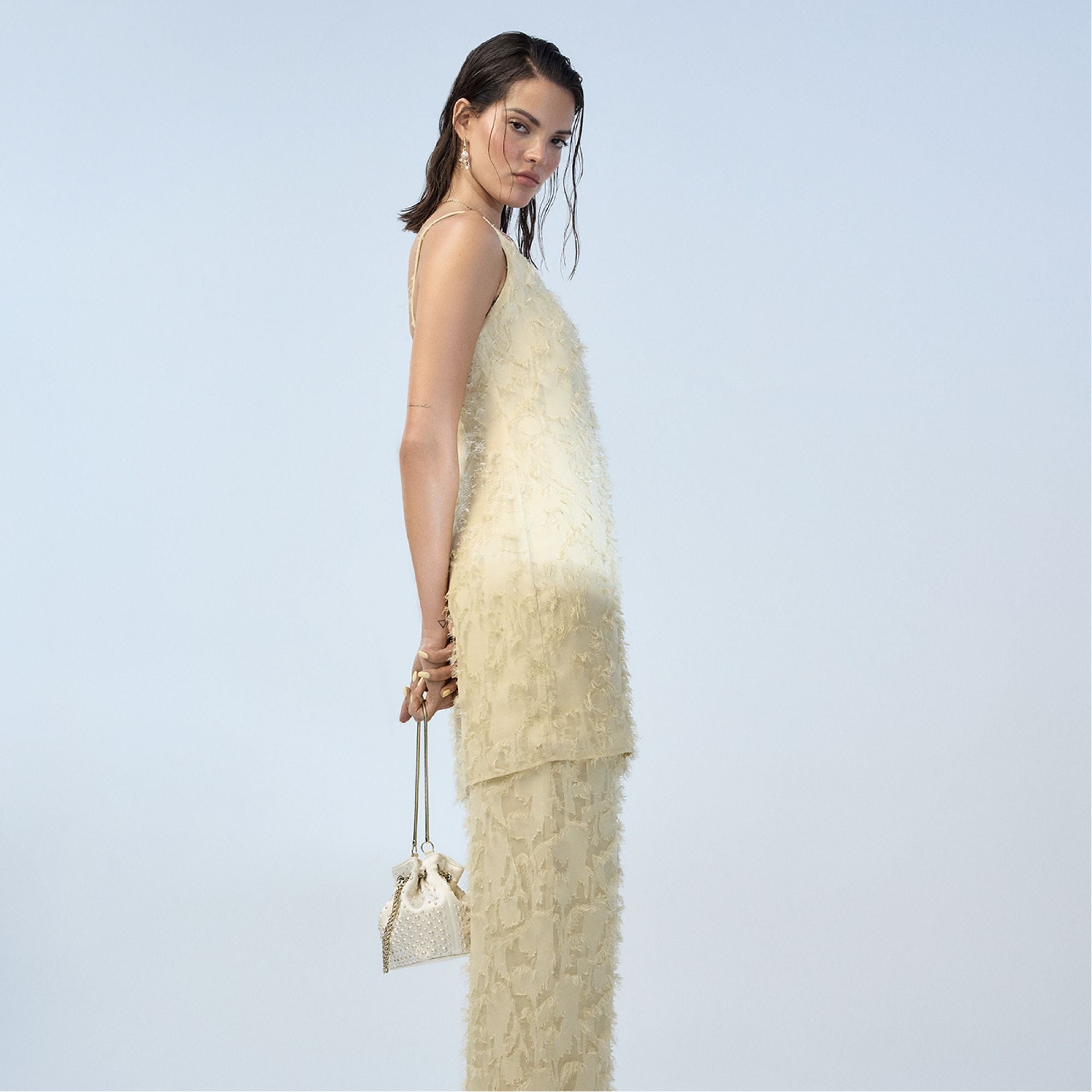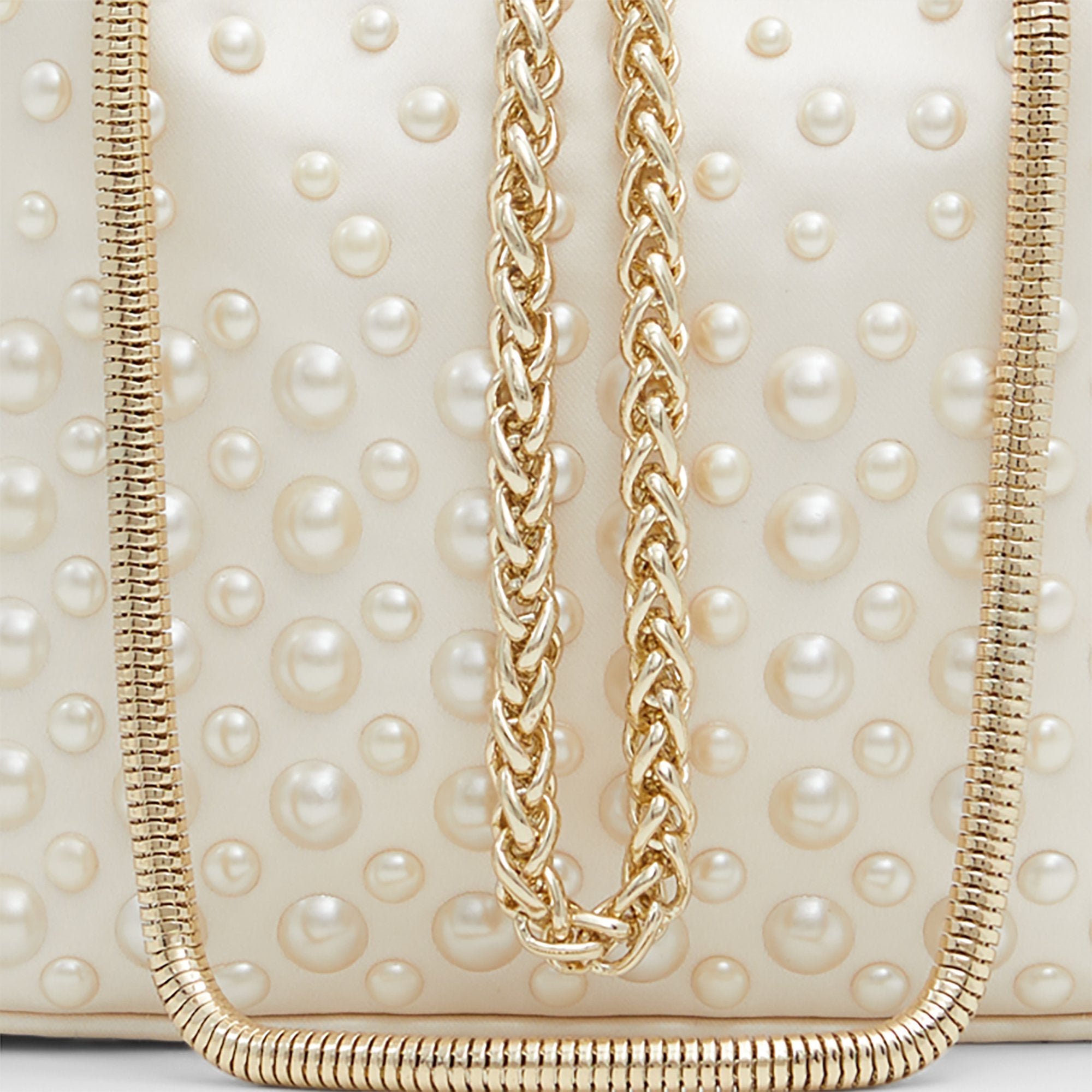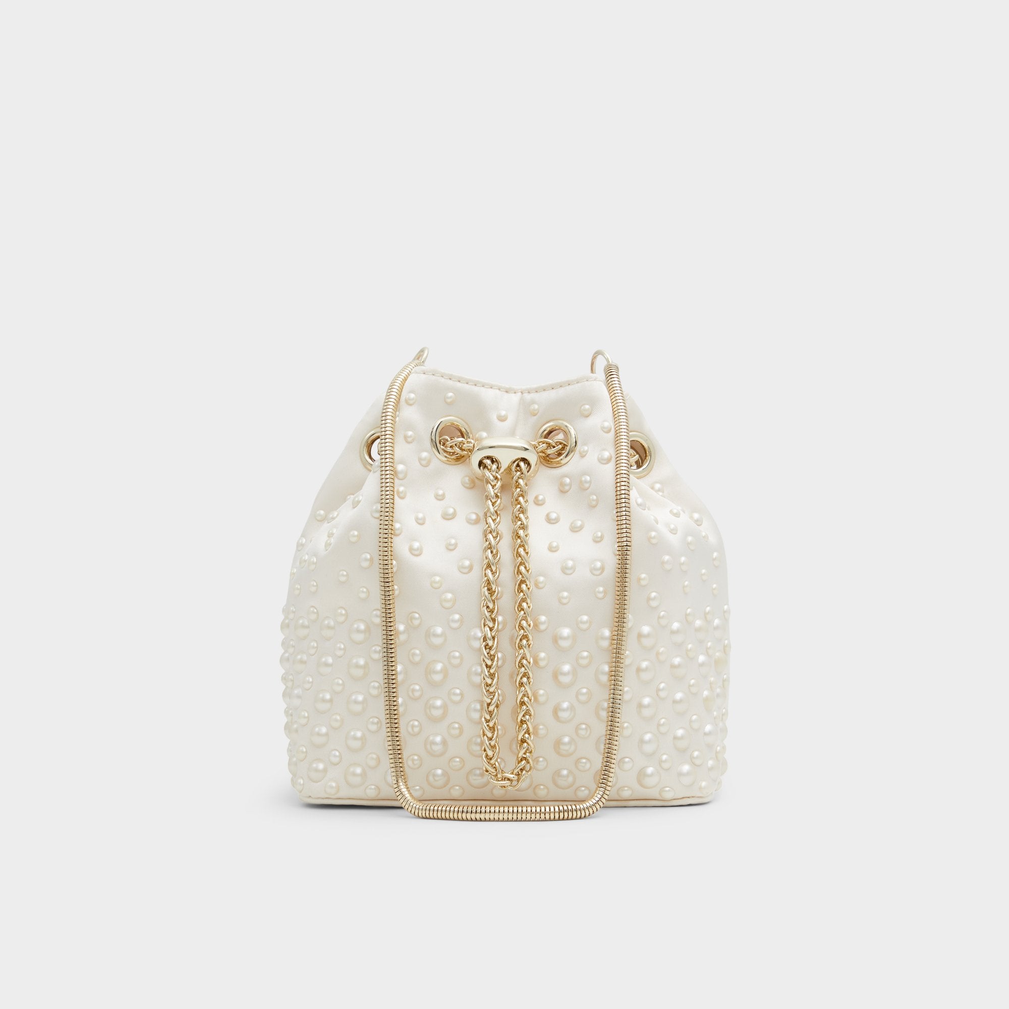 This dainty bucket bag with all-over pearl embellishments is simply too cute to resist! Ideal for weddings and special occasions alike. we think this bag will be the perfect complement to your elegant looks.
