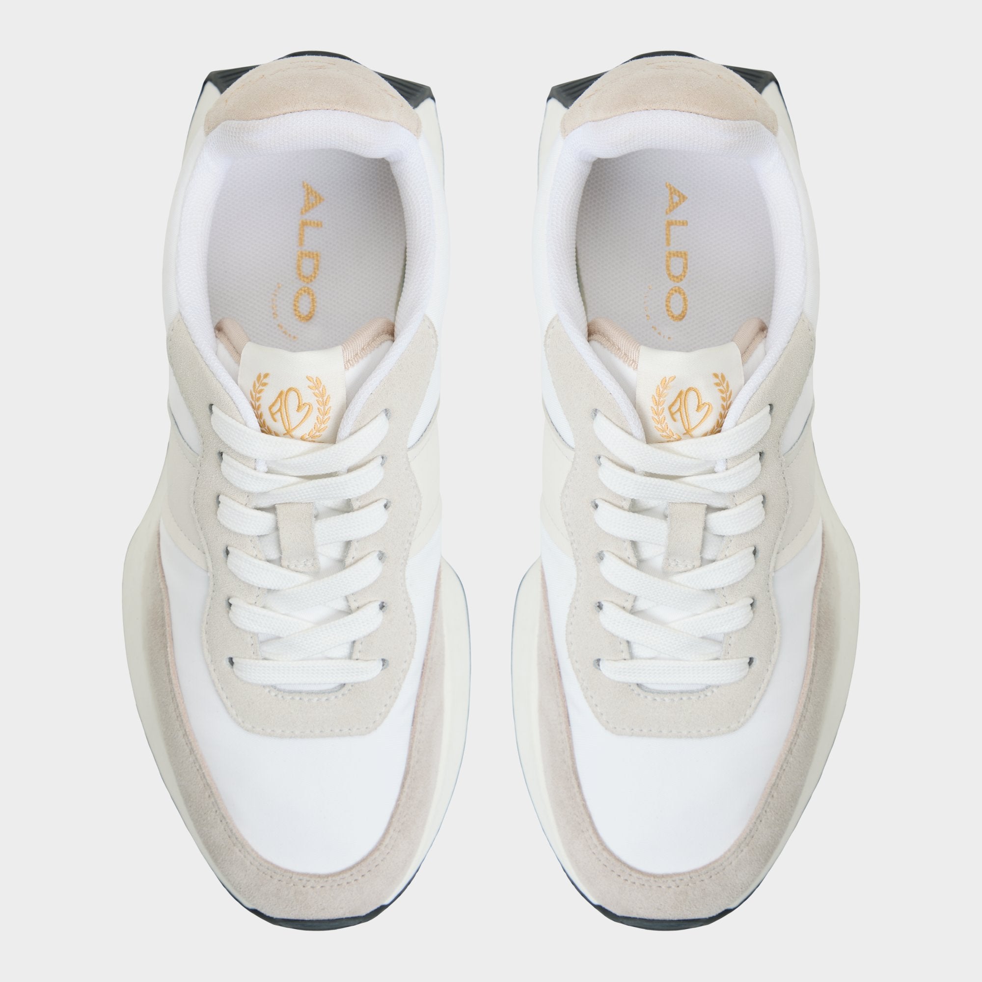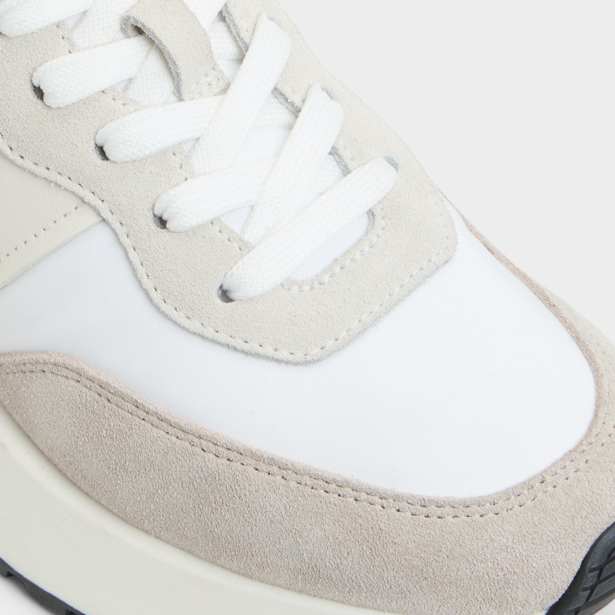 Throwback runner vibes meet everyday ease in a leather-mesh sneaker. framed by suede panels that add a sculpted highlight and lightweight lift for confident steps from city mornings to weekend wanderings. Pair with cropped denim for city mornings. or ground a flowy sundress for casual weekend strolls.