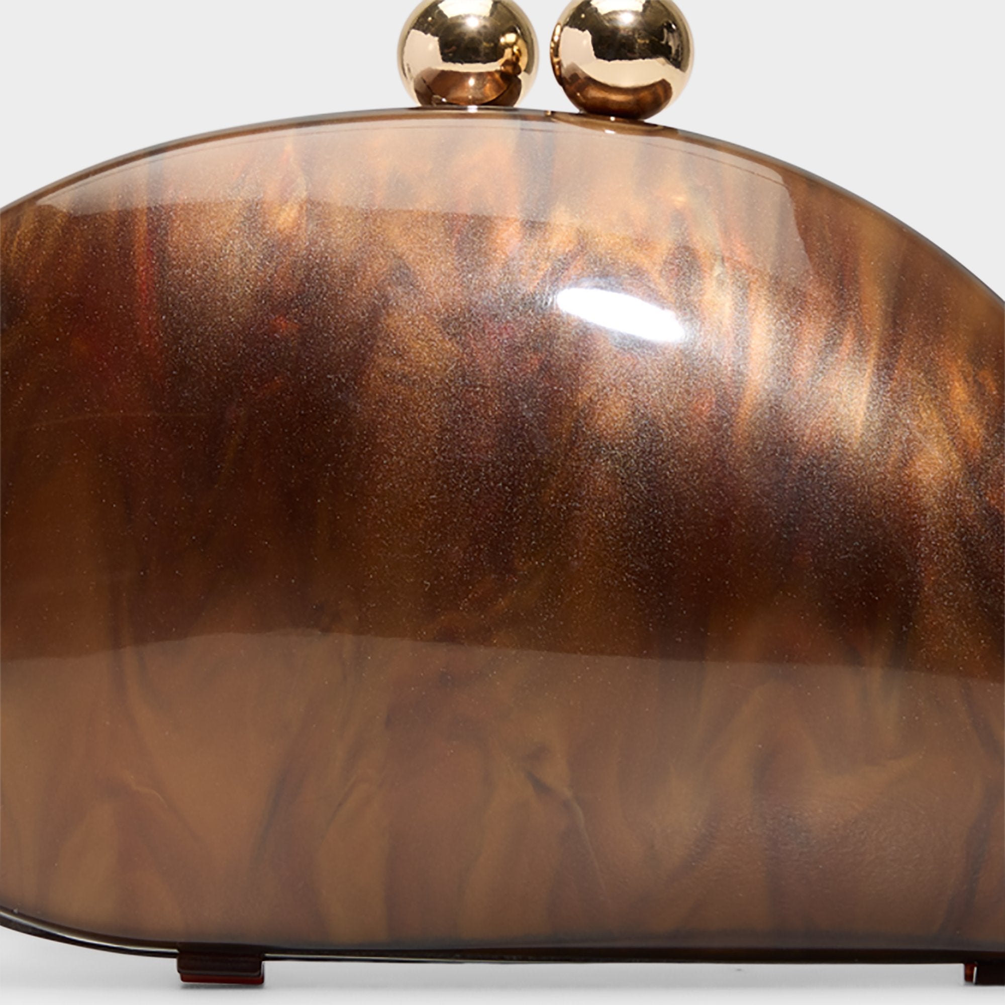 High-gloss marbled acrylic sculpts this pebble-slick clutch into a tiny work of art. crowned by gleaming orb-kiss lock hardware that snaps shut with satisfying certainty. keeping cards. keys. and lip tint quietly in place. Clutch it at gallery openings with a slip dress or tuck it under a blazer for late-night jazz. letting molten swirls finish the vibe.