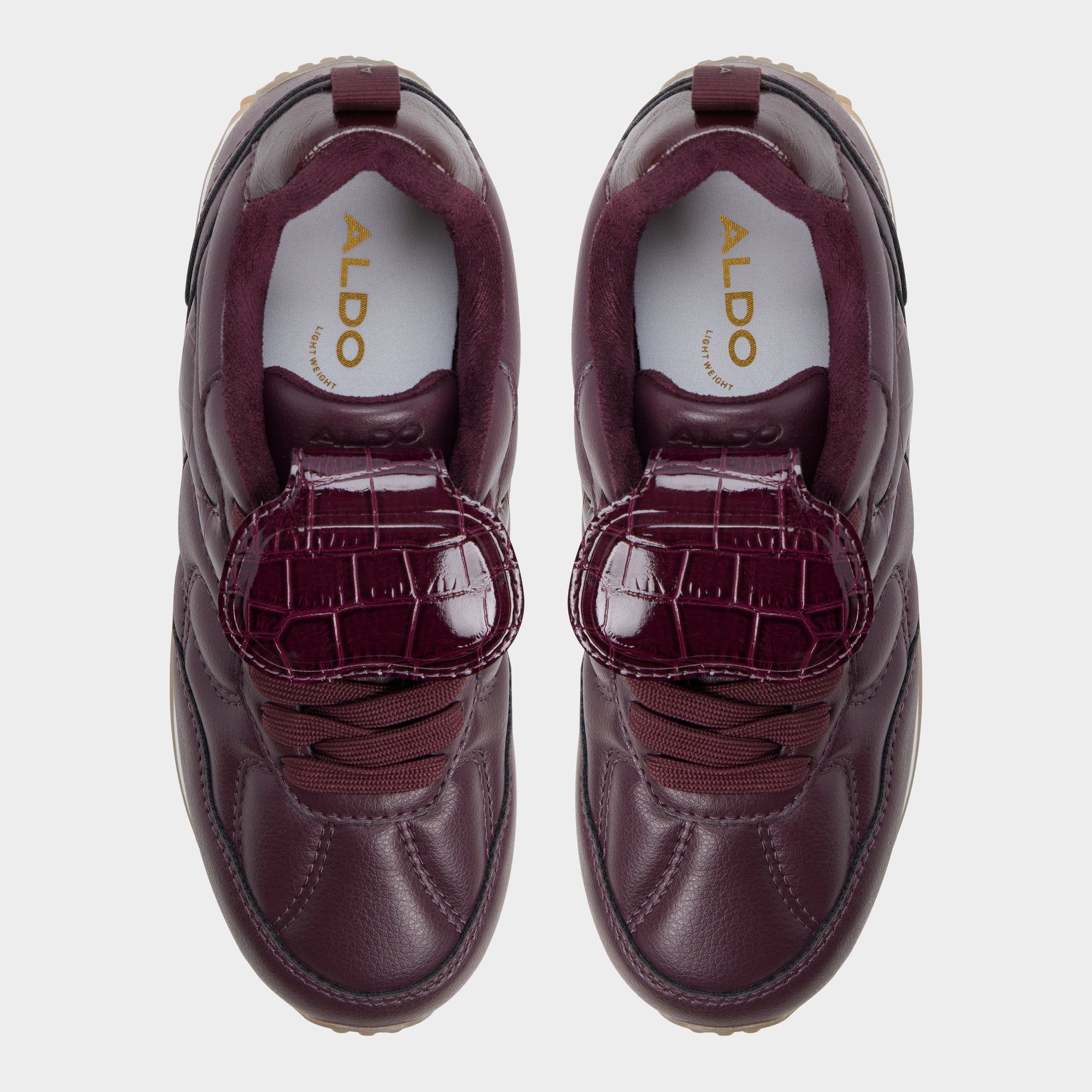 Deep merlot leather drapes quilted curves with croc-patent flashes. while a lace-and-Velcro closure delivers quick. secure comfort from morning errands to gallery-hopping nights. with a confident stride on crowded sidewalks. Pair with cropped denim for art crawls. or slip beneath a satin midi for cocktail hours.