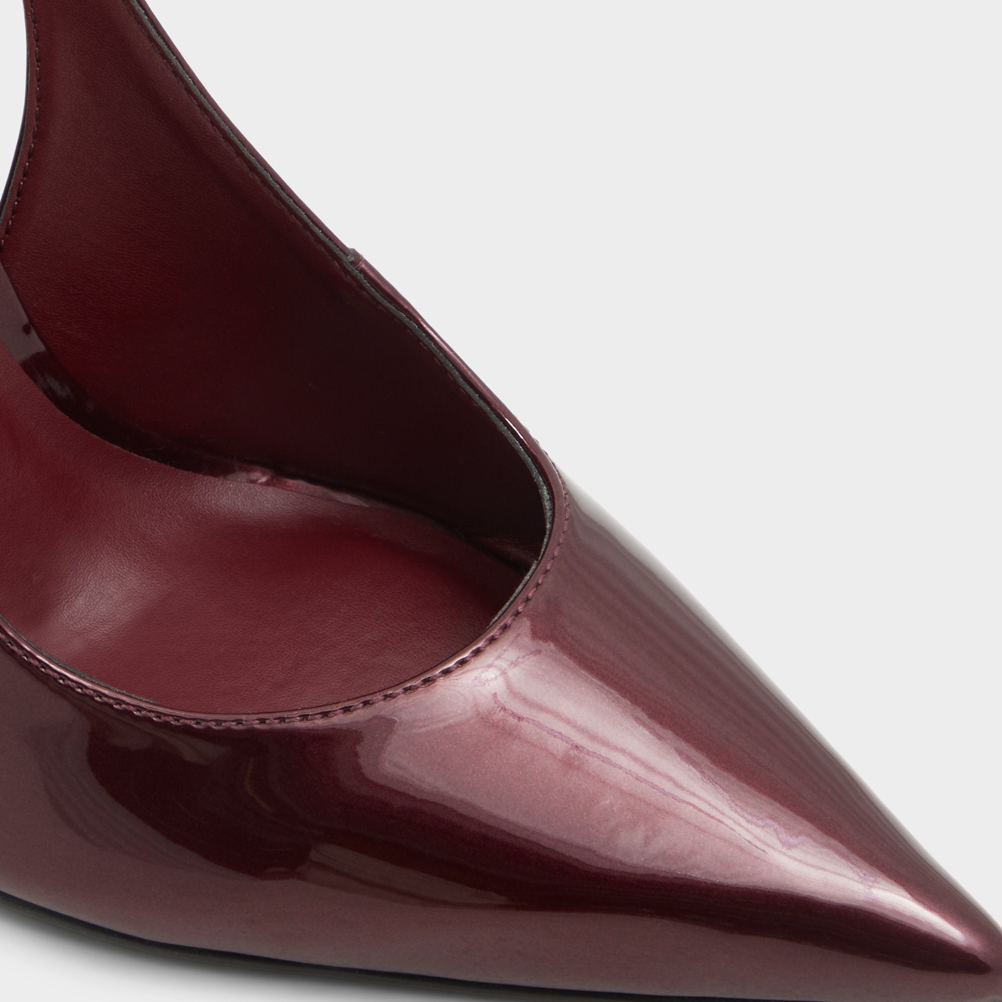 Velvety patent shine wraps this scarlet slingback. and a sharp stiletto adds clean altitude. turning each step into a spark. with an adjustable buckle keeping the fit secure. Pair with a tailored jumpsuit for networking hours. or slip under a slinky dress when date-night desserts become rooftop views.